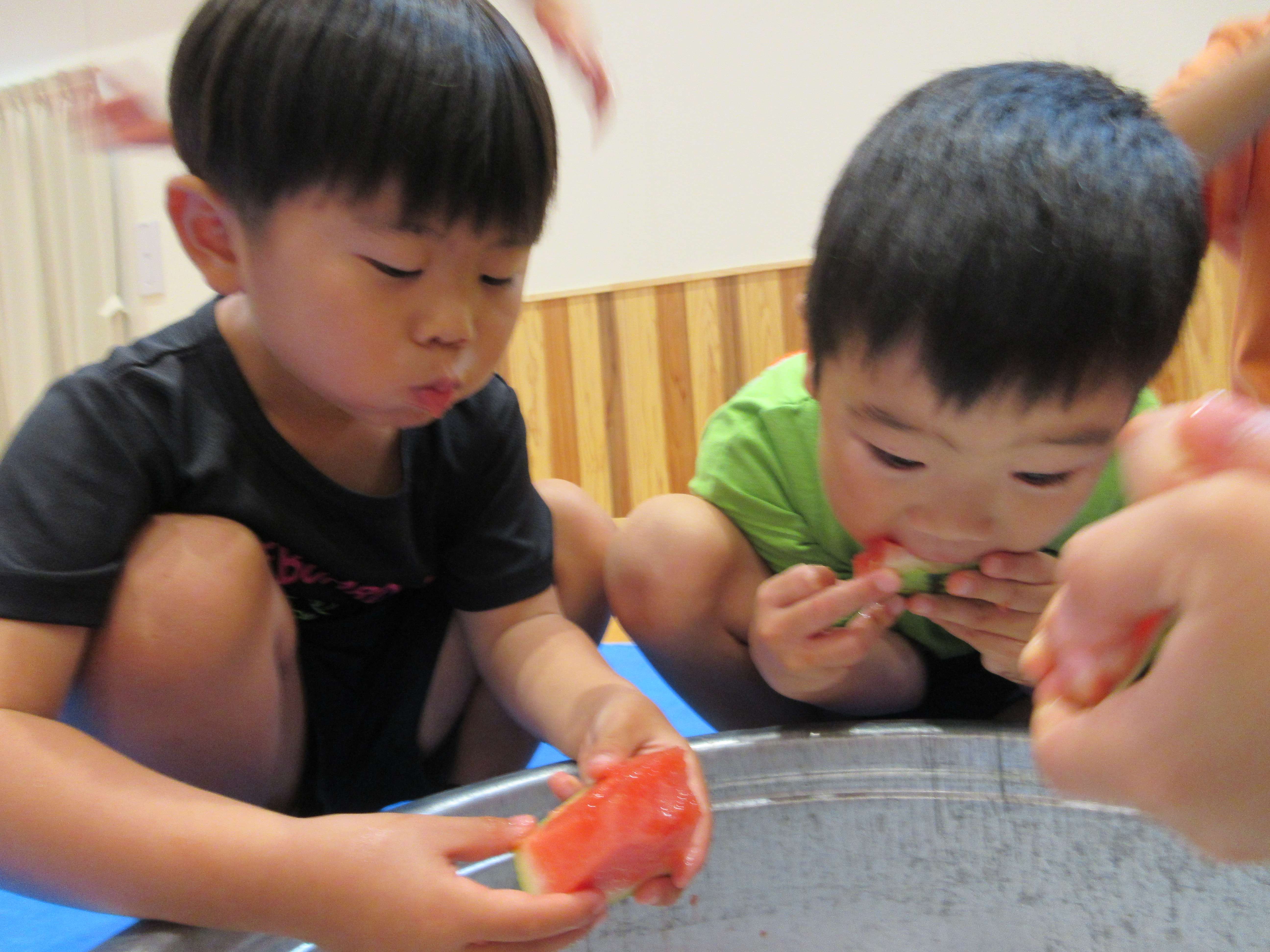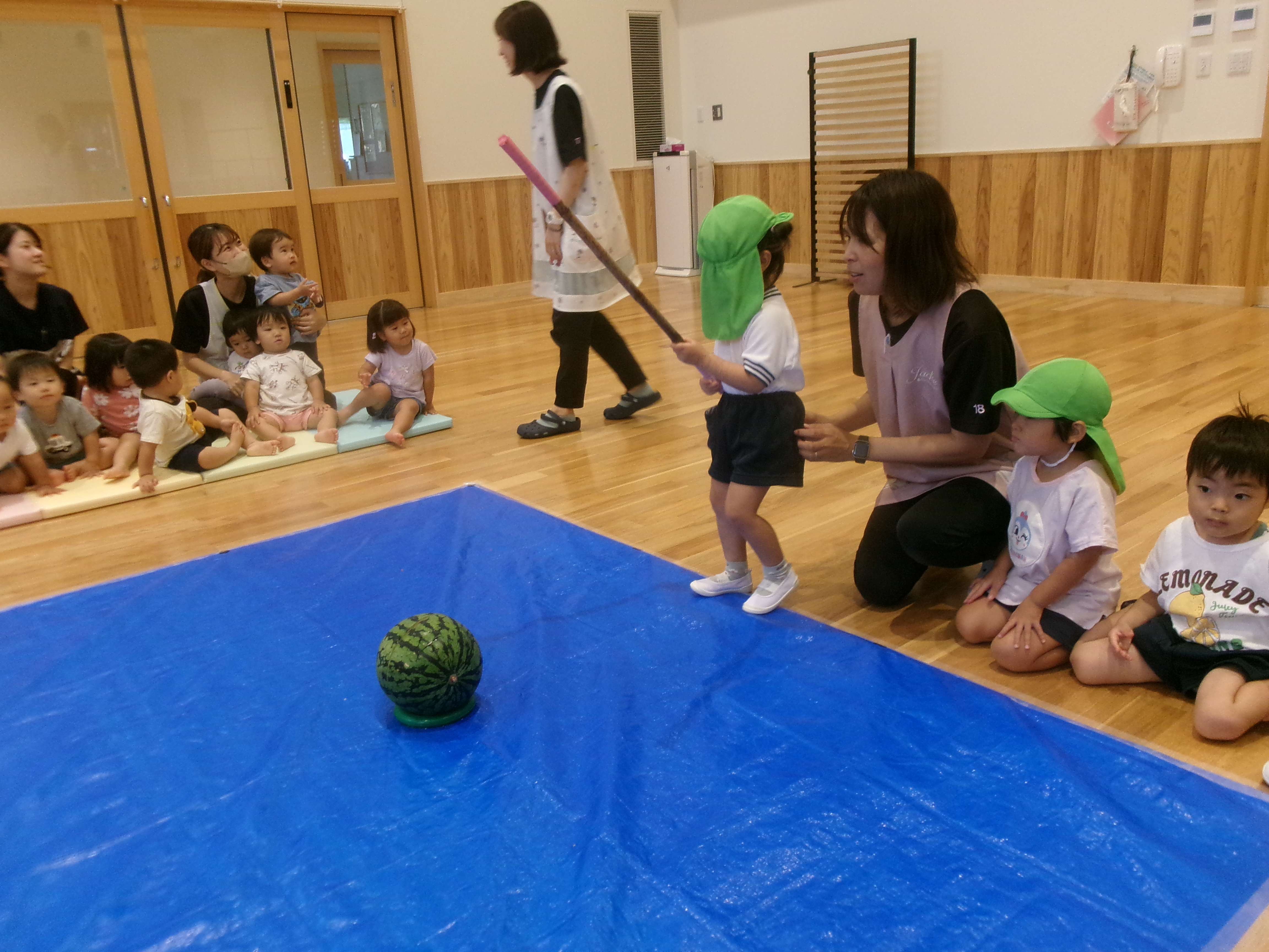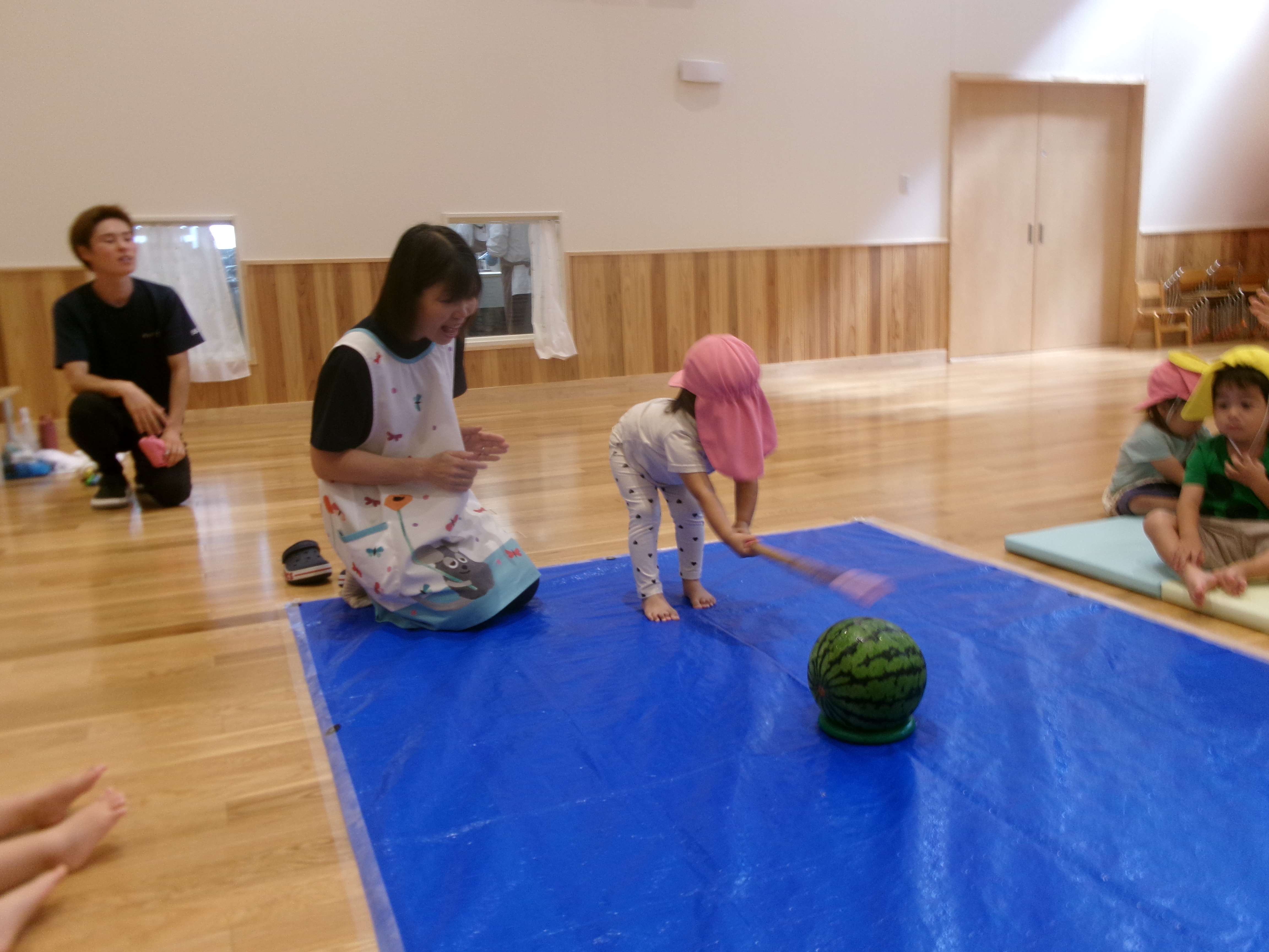 すいか頑張って割りました!自分で割ったすいかは美味しいよ♪