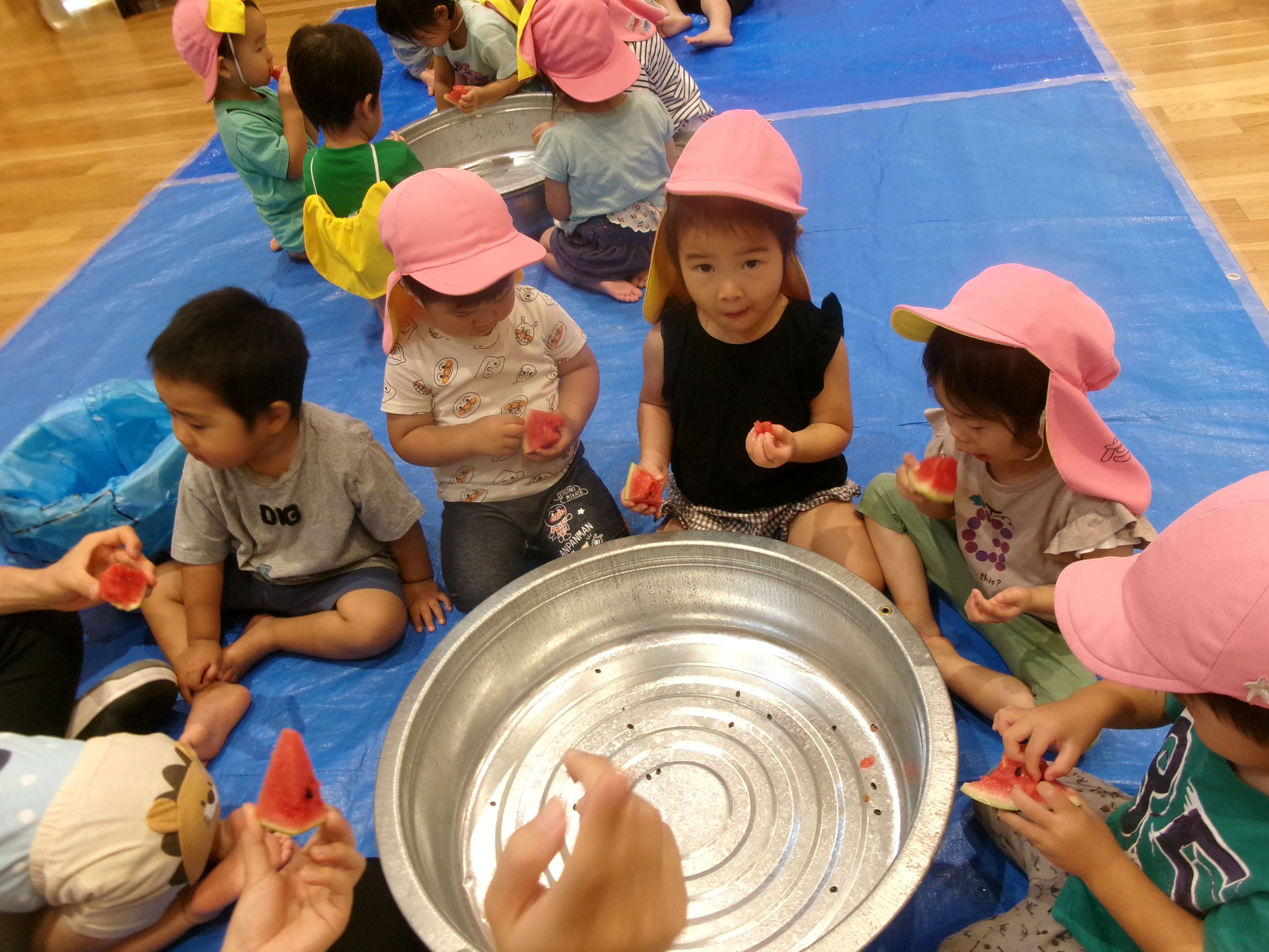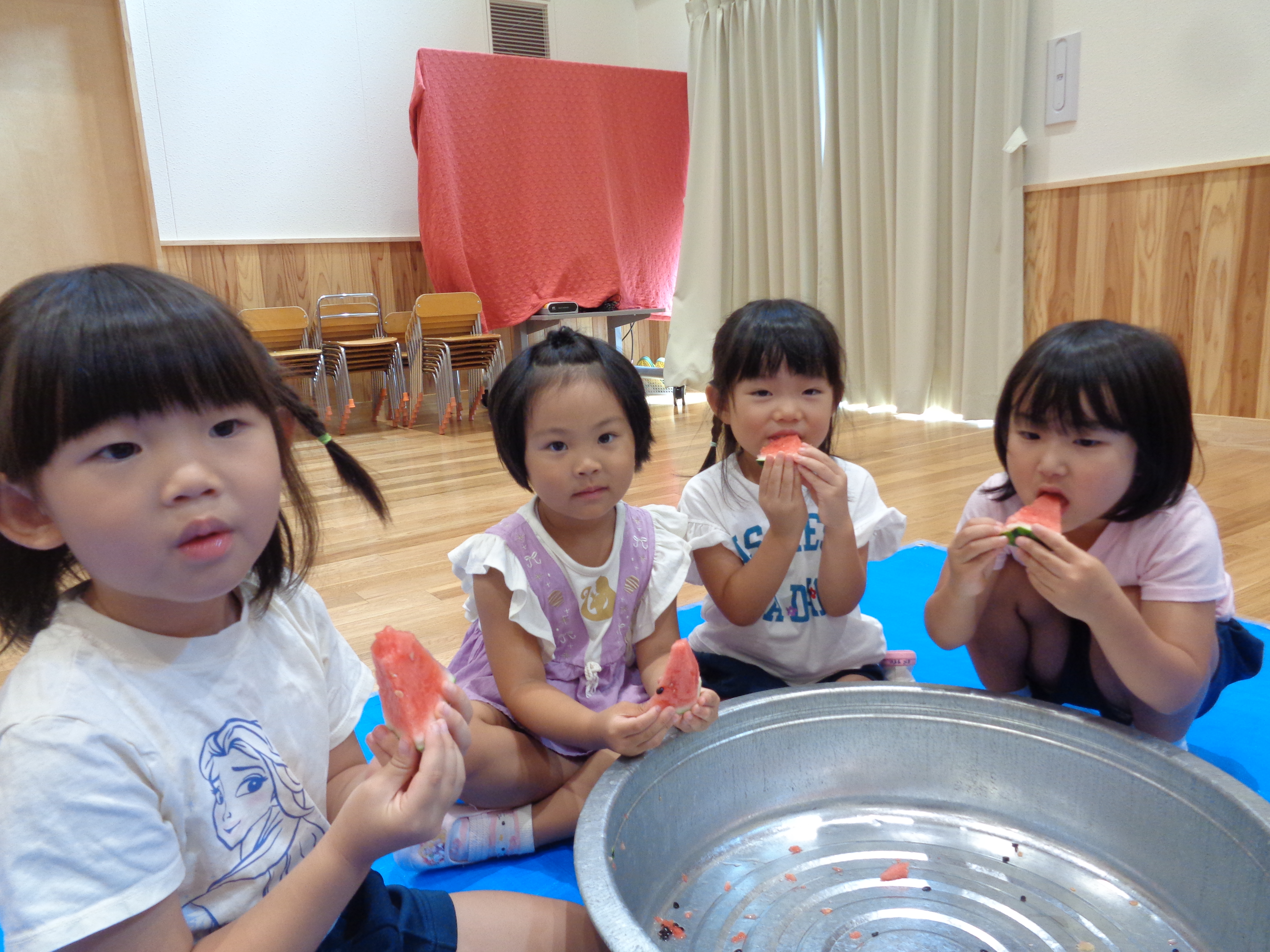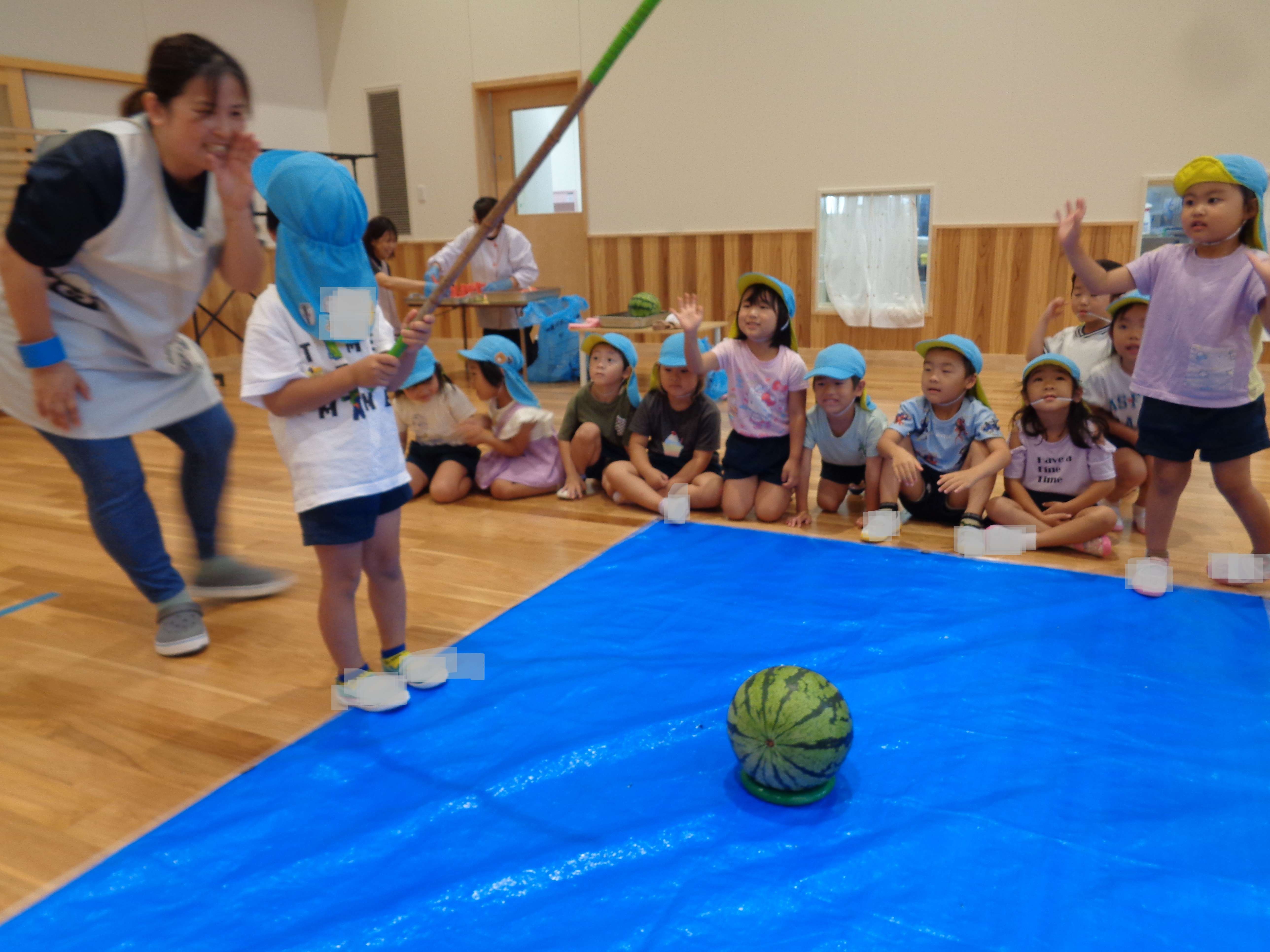 すいか頑張って割りました!自分で割ったすいかは美味しいよ♪