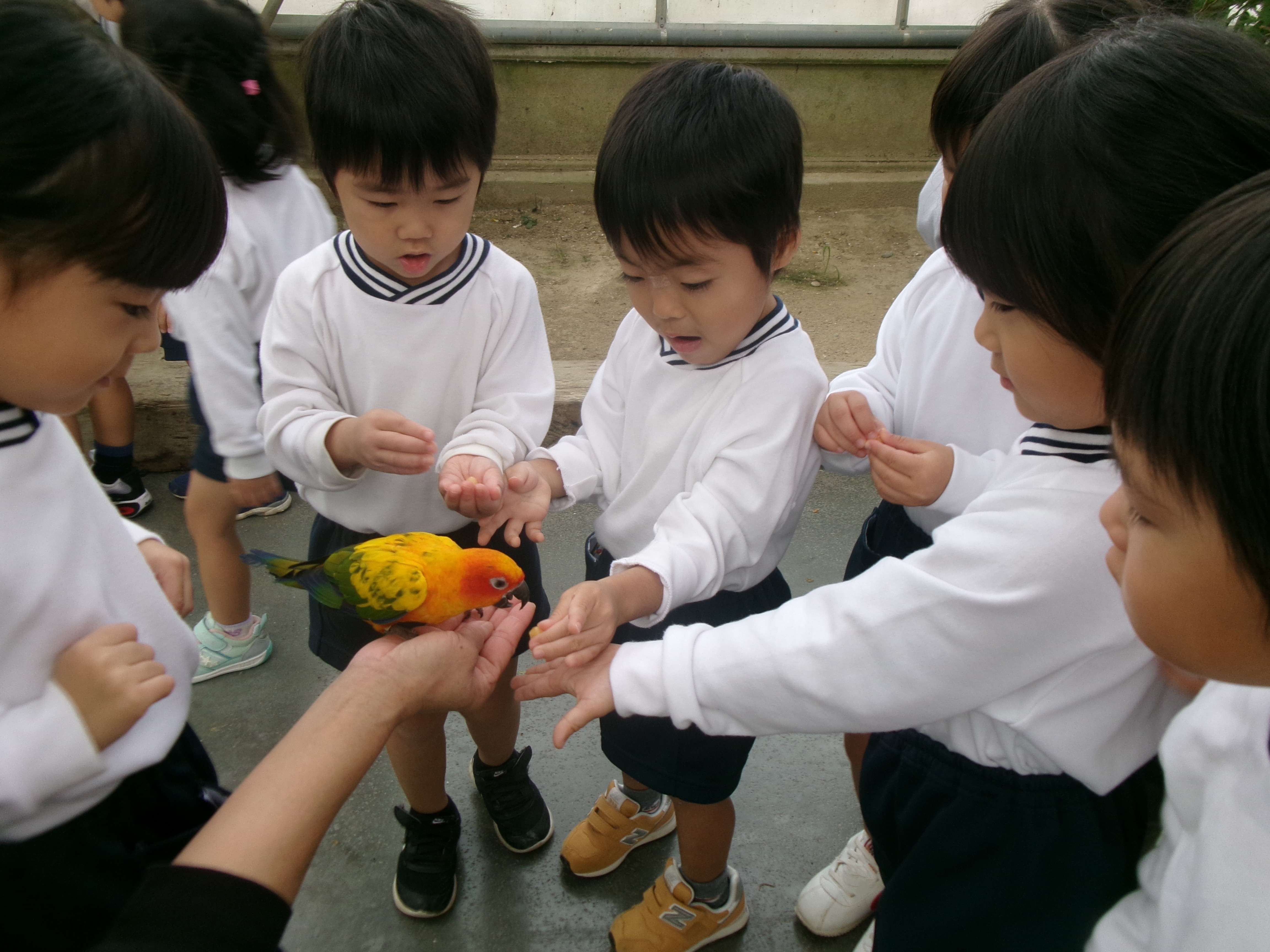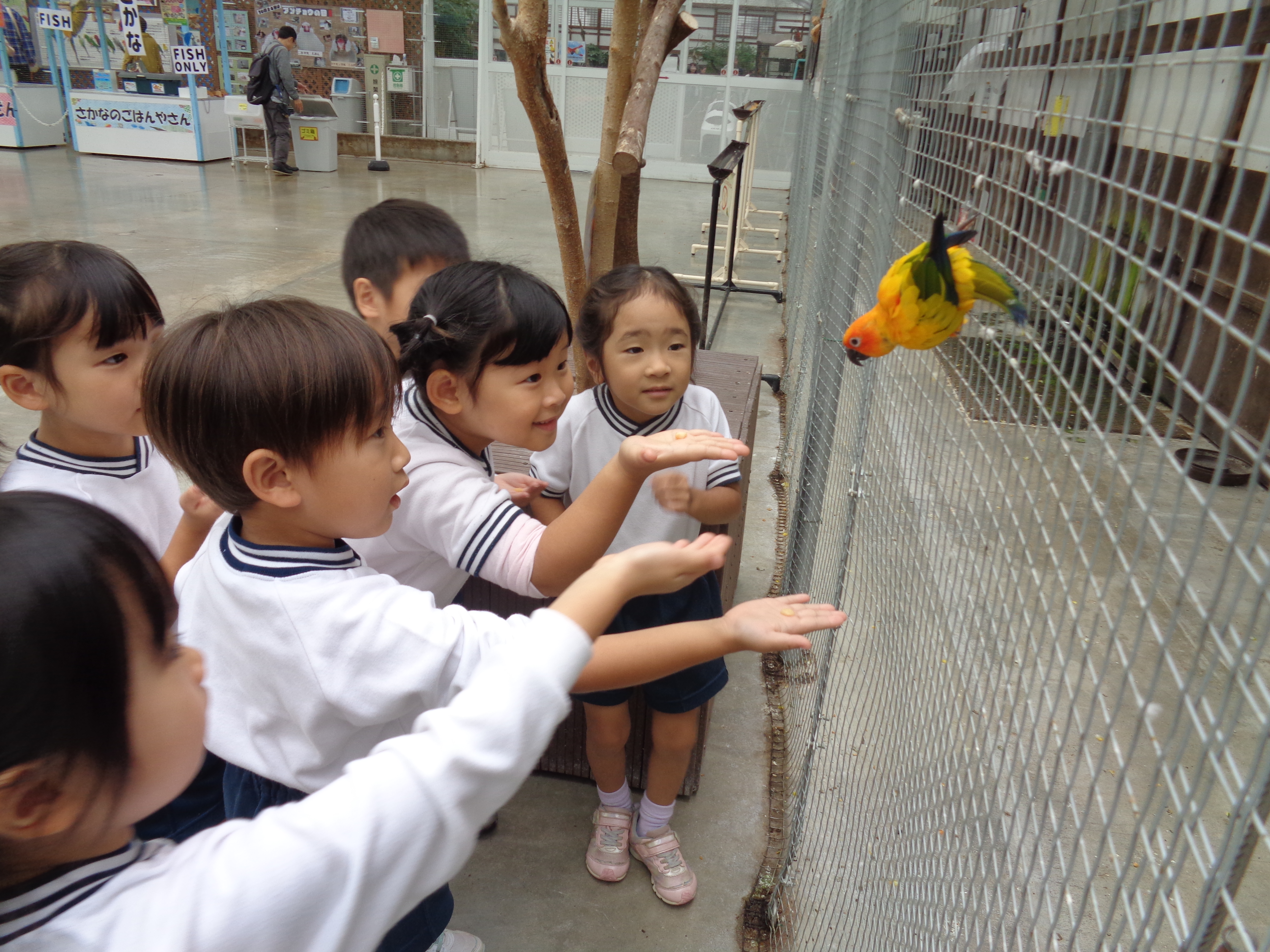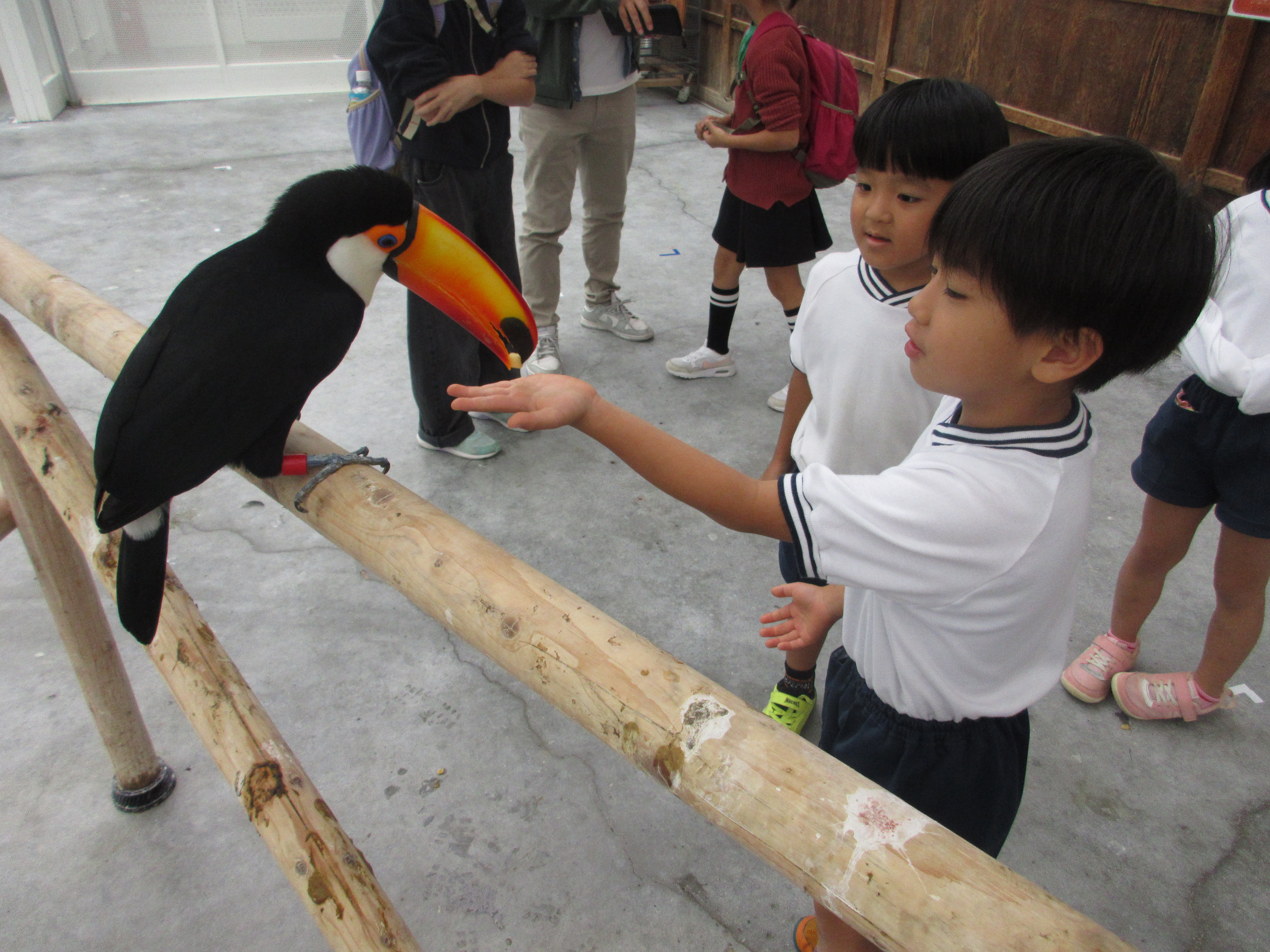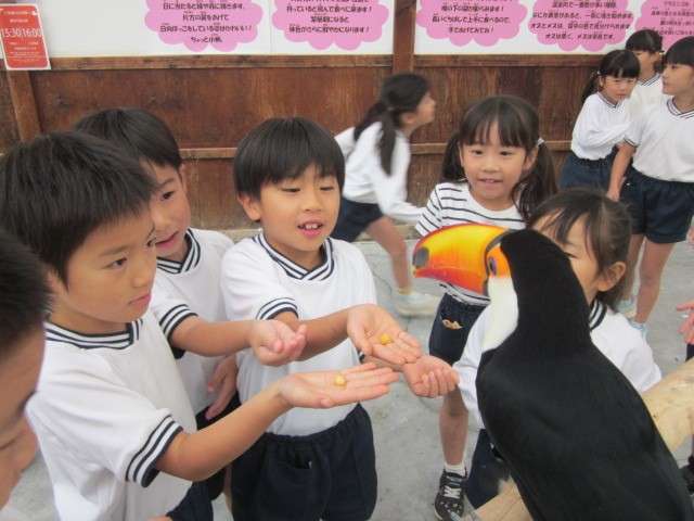 遠足でバスに乗って掛川花鳥園に行きました♪可愛い鳥を近くで見たり、餌をあげたりしてみんな大喜びでした!!