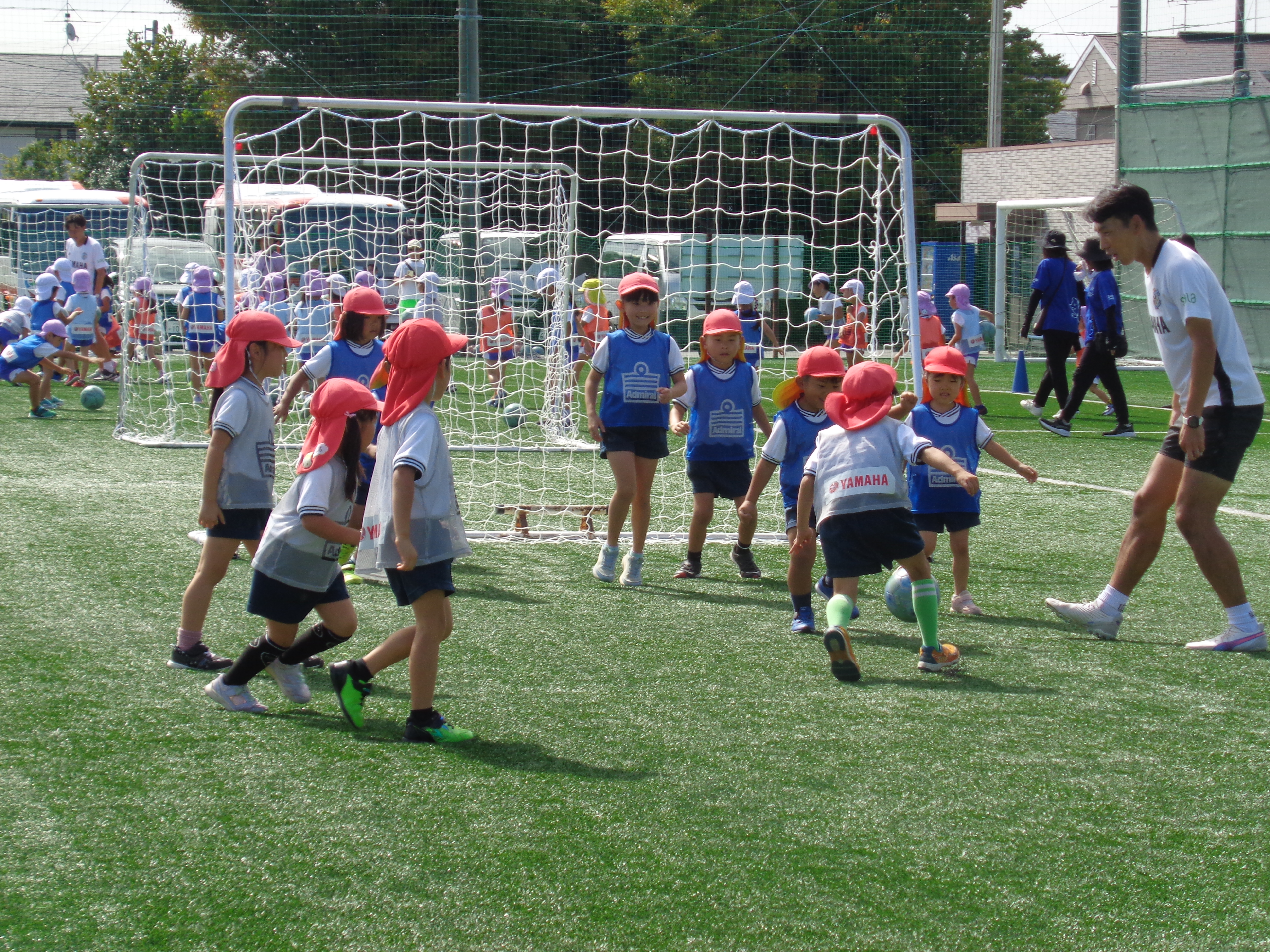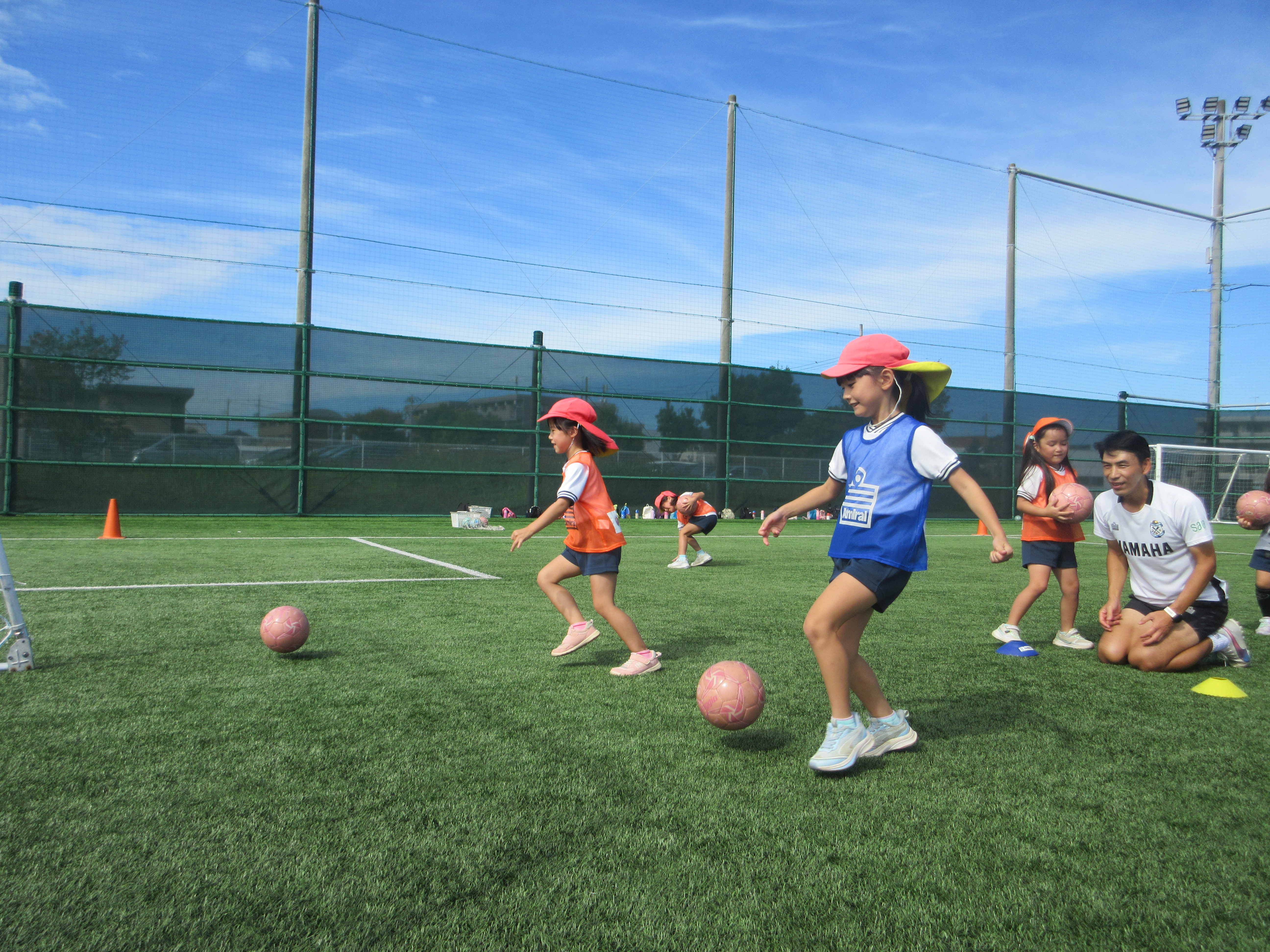 ジュビロのコーチにサッカーを教えていただきました。シュートもきまりとても楽しいサッカー教室でした♪
