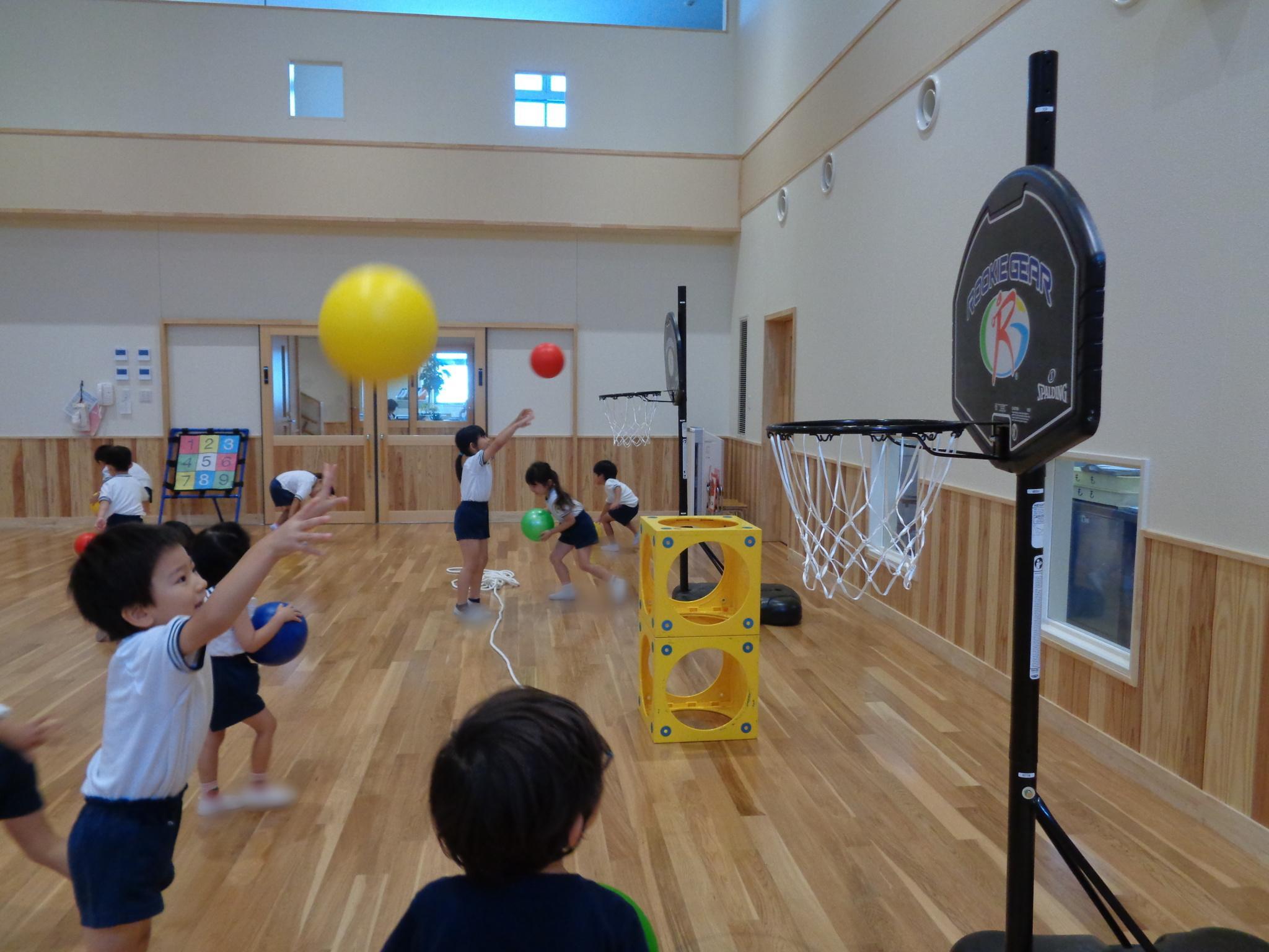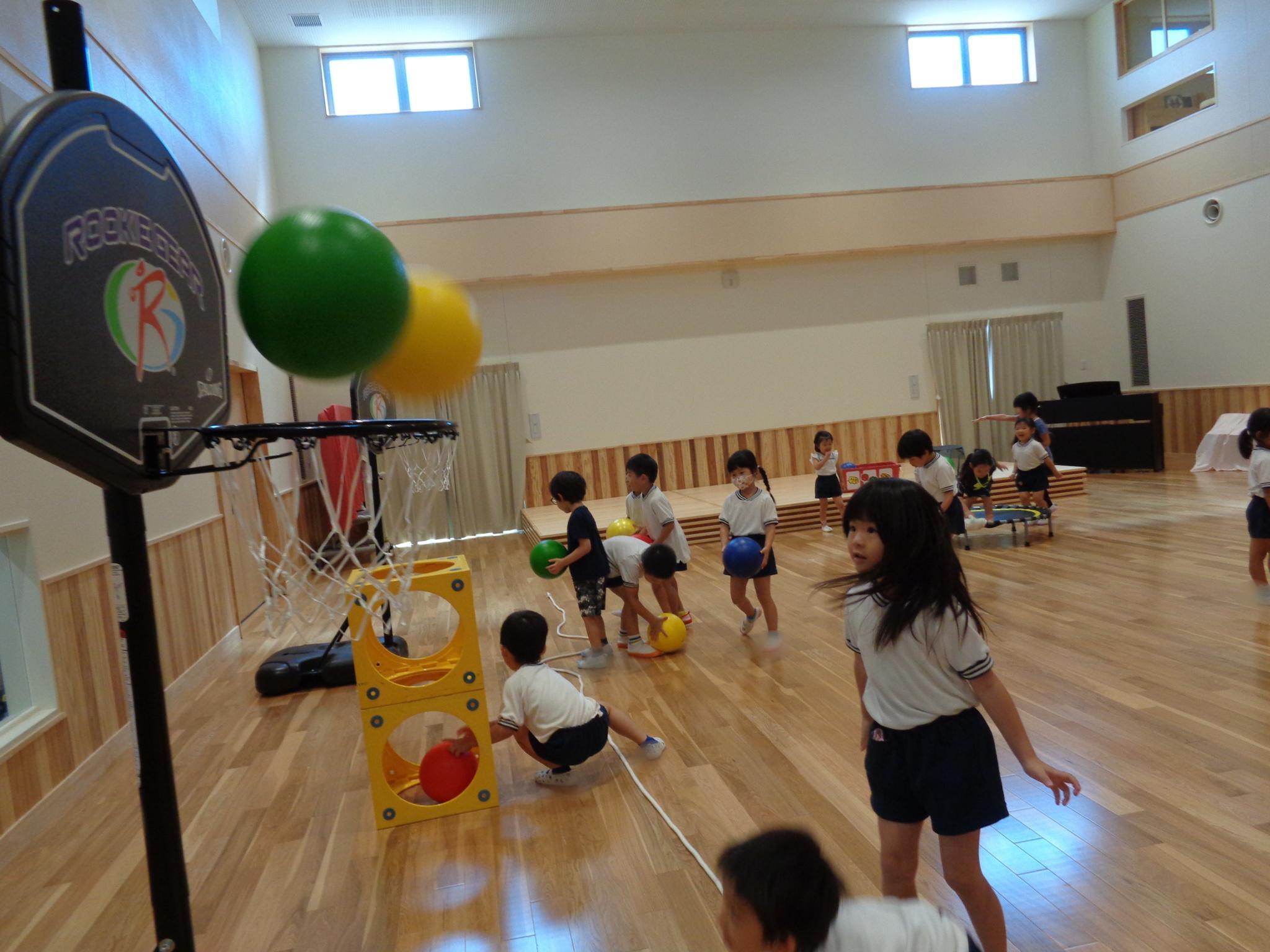 もうすぐオリンピック!という事でポスターにもあったバスケットをして楽しみました!「ゴール!!」「はいった!ナイス~♪」と嬉しそうな声がたくさん聞かれました。