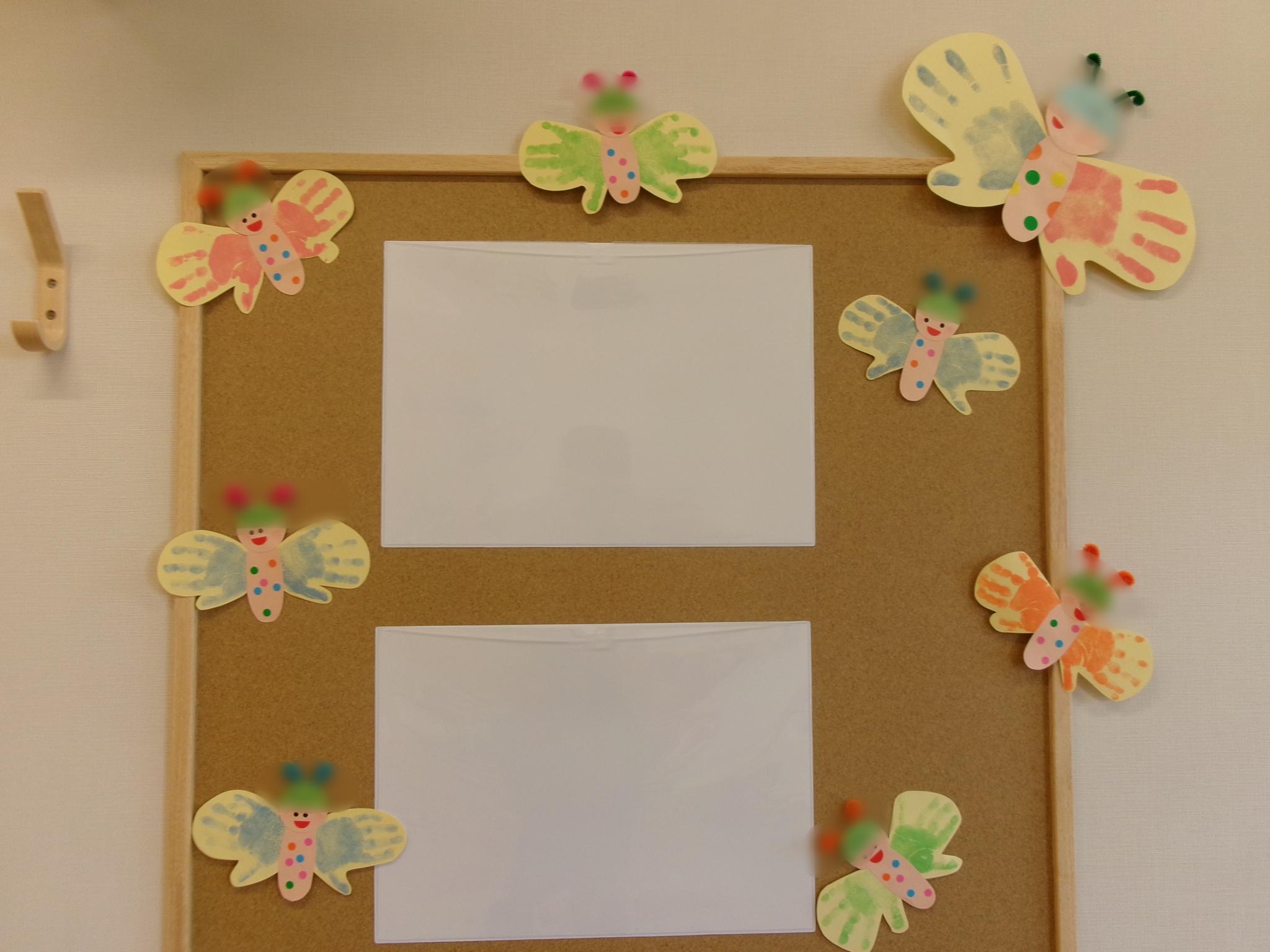 スタンプ台で手形を取り、ちょうちょを作りました。