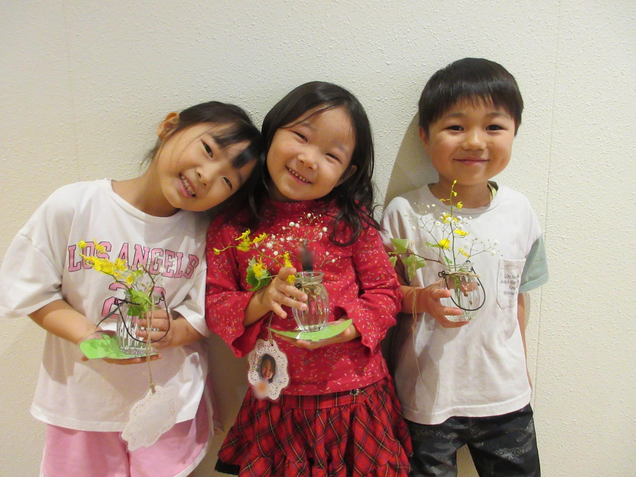 ひとつひとつ丁寧にお花をアレンジする子どもたちのやさしいまなざしにほっこりです♪