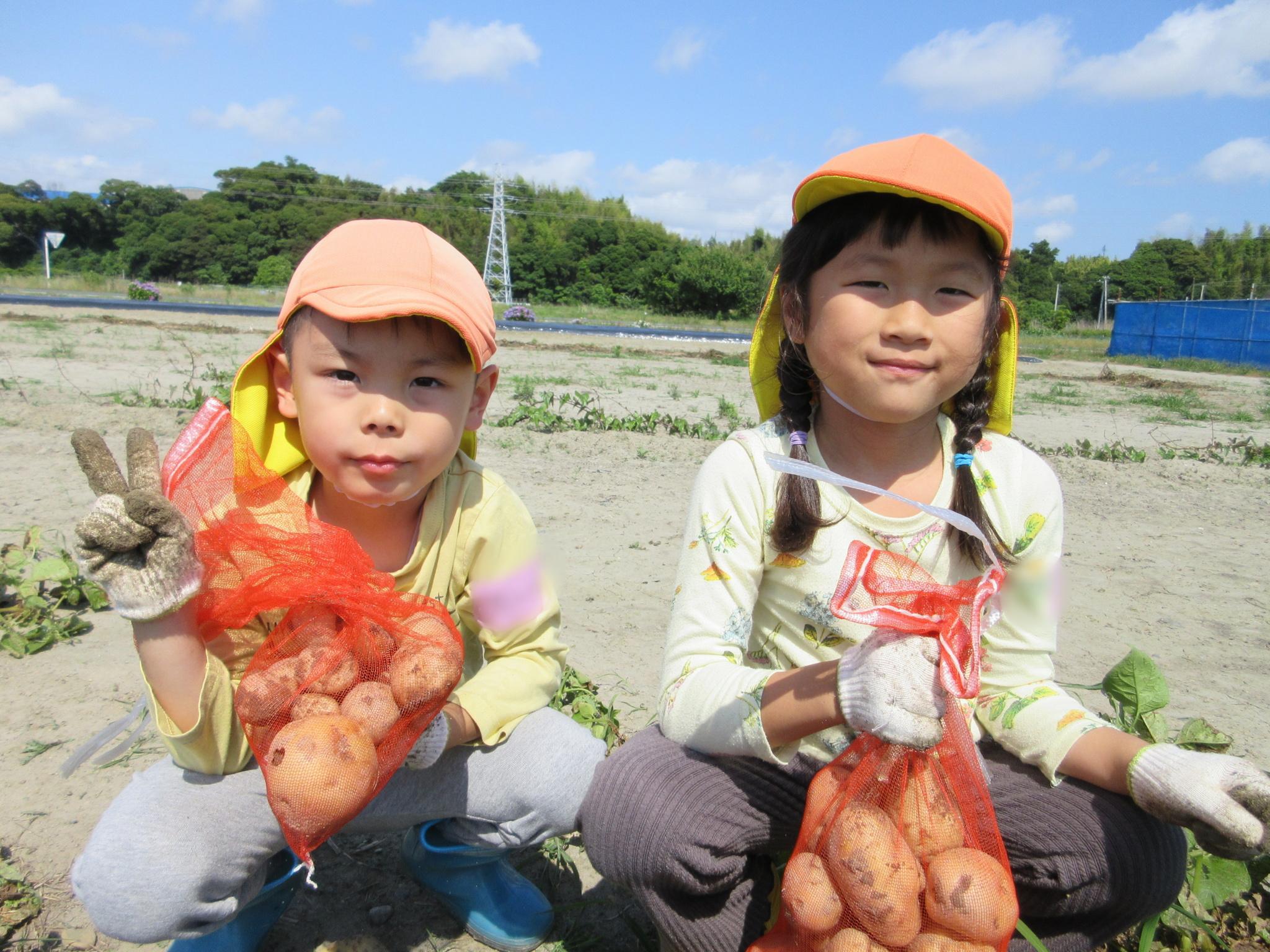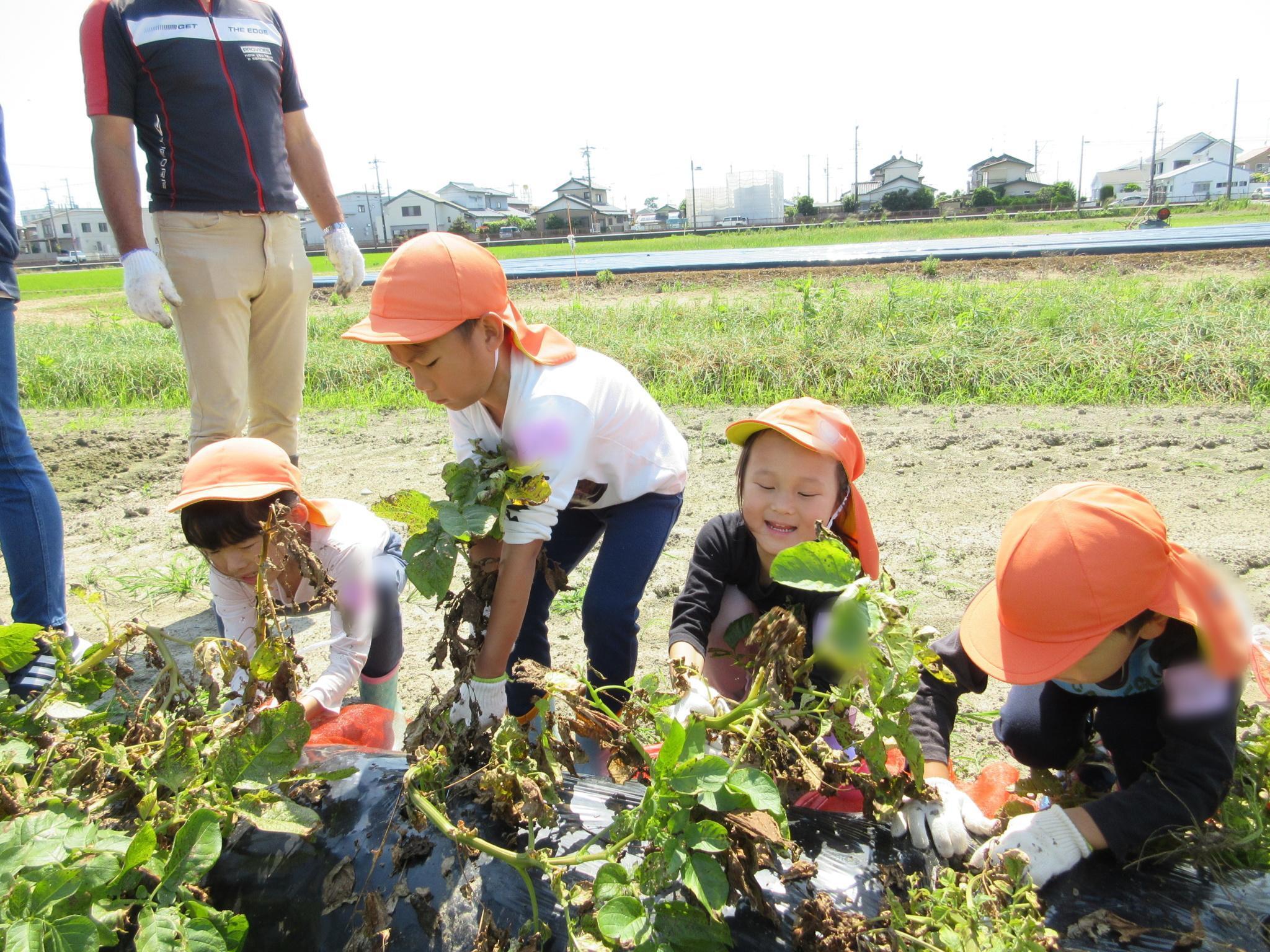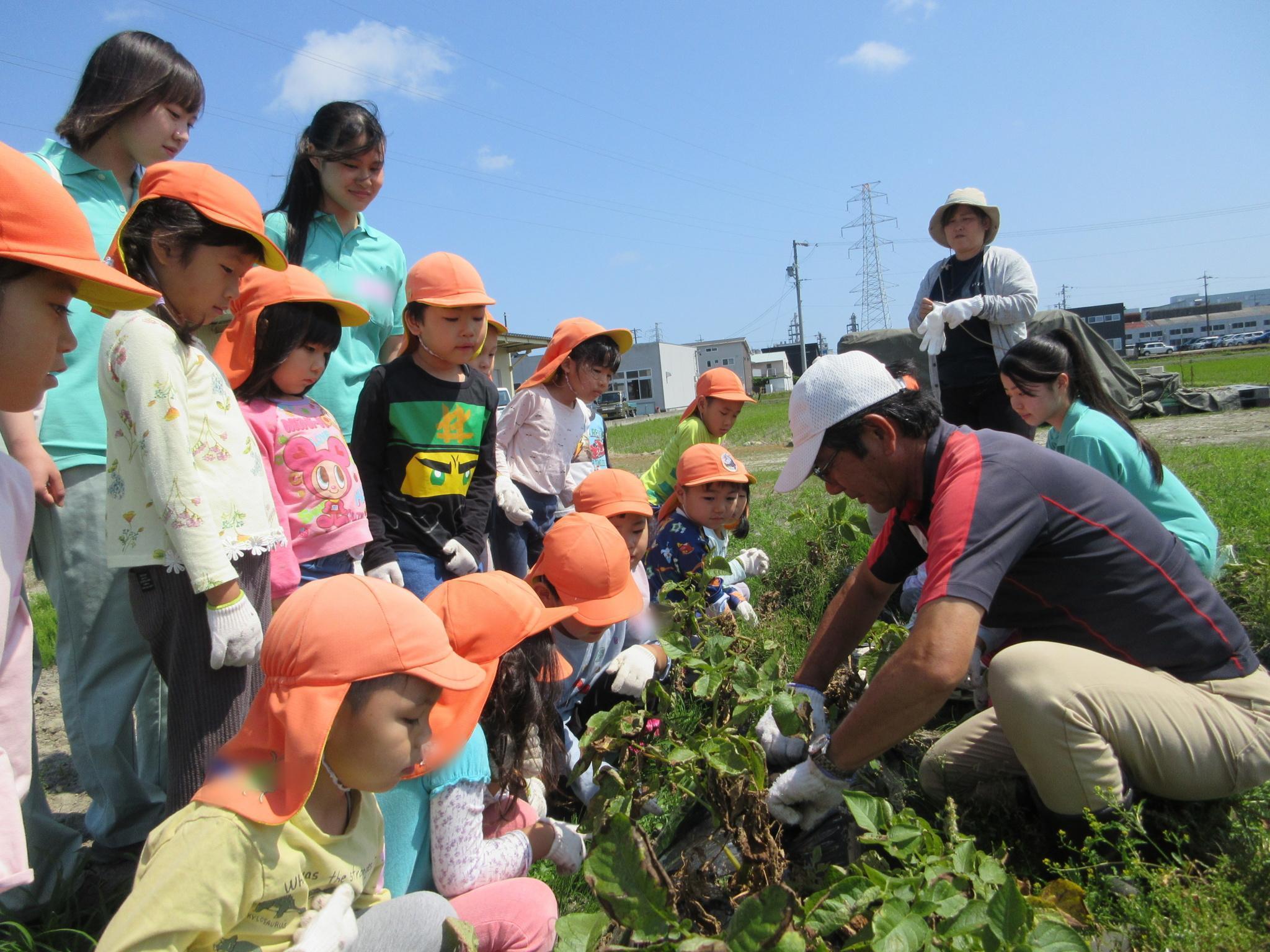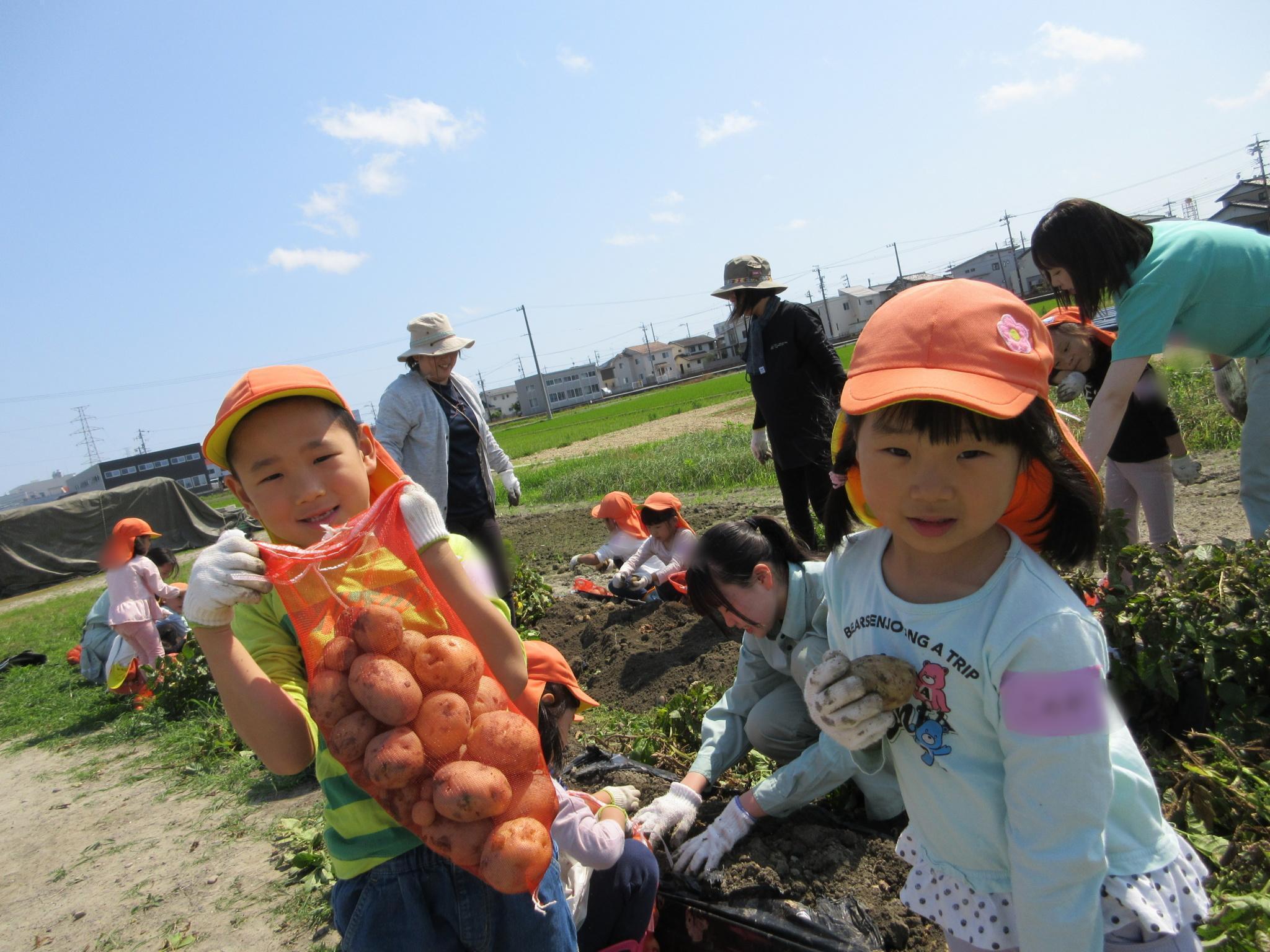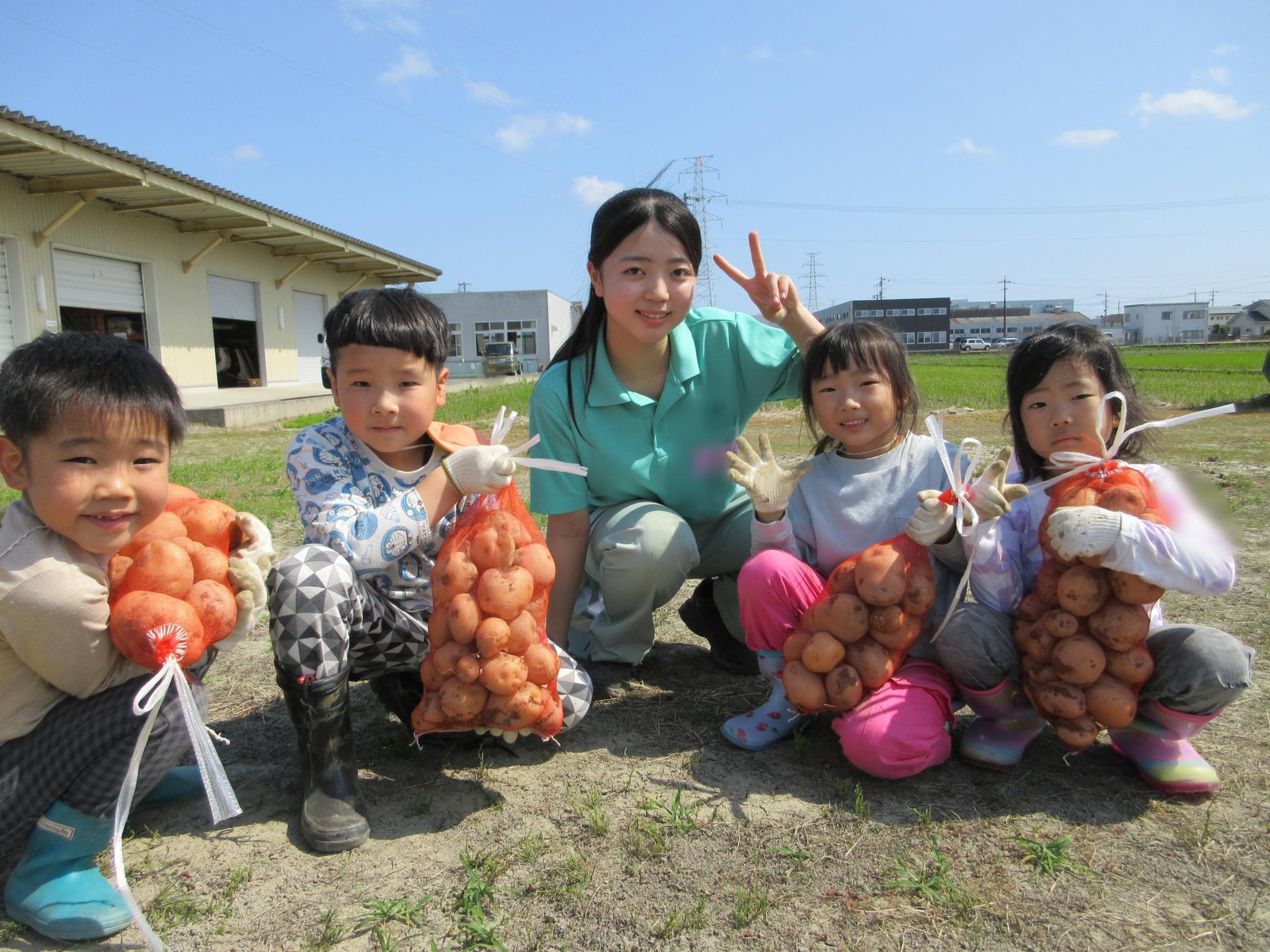 今日は一言農場で磐田農業高校のお姉さんと一緒にじゃがいも掘りをしました。学校の先生からじゃがいもの掘り方を教わると、やる気満々な子どもたち!小さなものから大きなものまであり、「じゃがいもの家族みたい!!」とほっこり。今日の夕ご飯を楽しみにしていました♪
