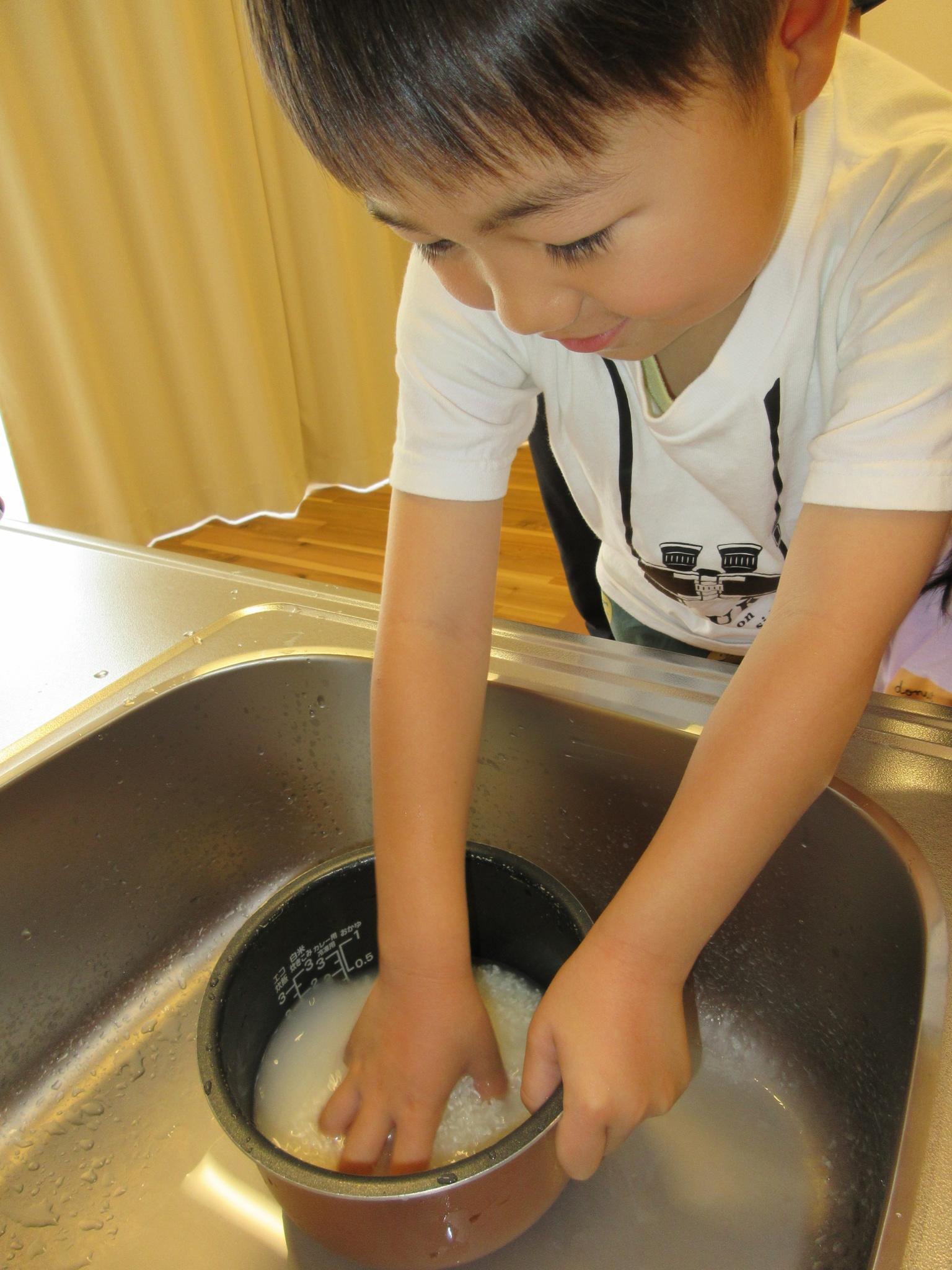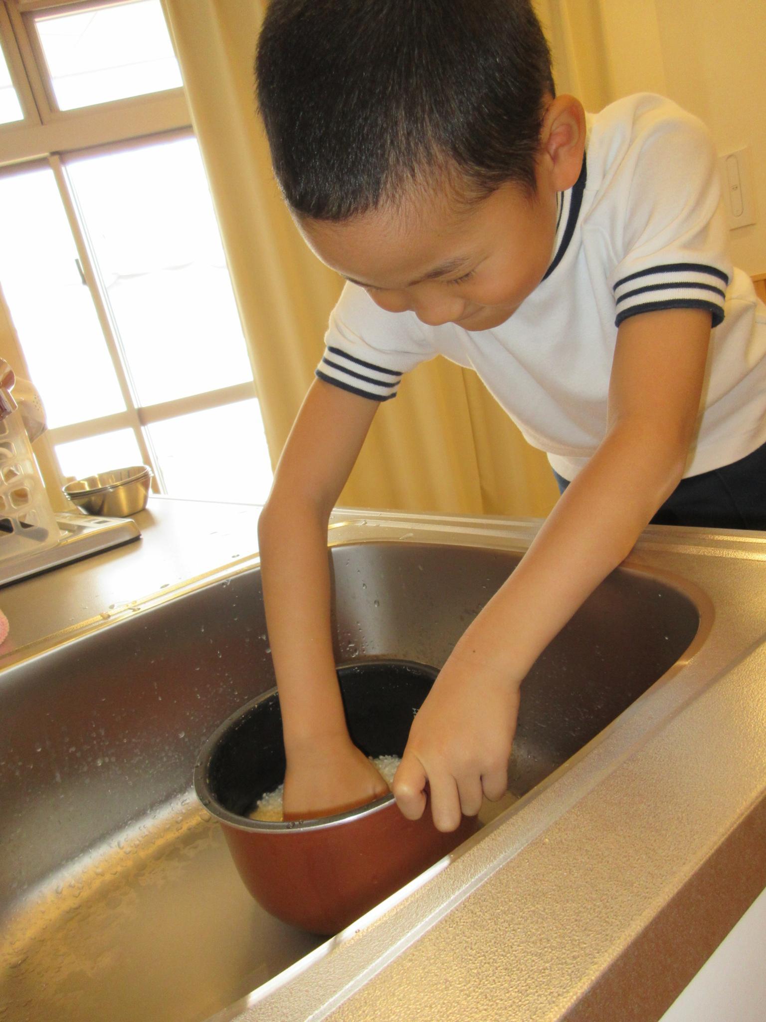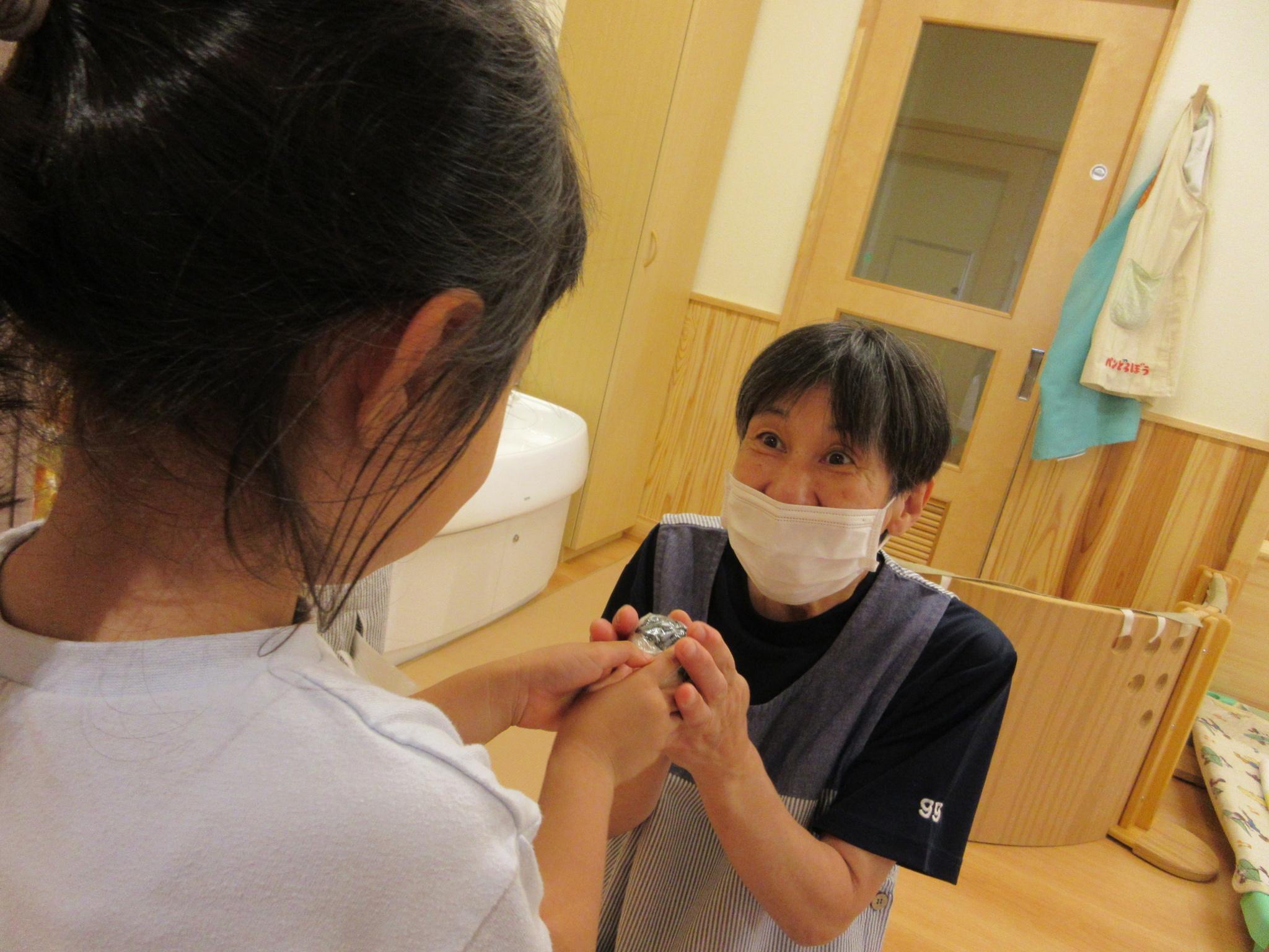 「家でも作って食べようかなあ~」「お母さんと同じくらいおいしい~」「わぁ~いい匂い~」体全体でおにぎりを感じている子どもたちです。