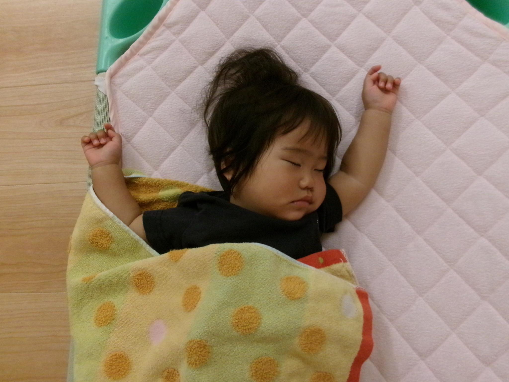 お部屋での生活にも慣れ、安心して眠れるようになりました。気持ちよさそうに寝ている子どもたち‼いい夢見てね♪