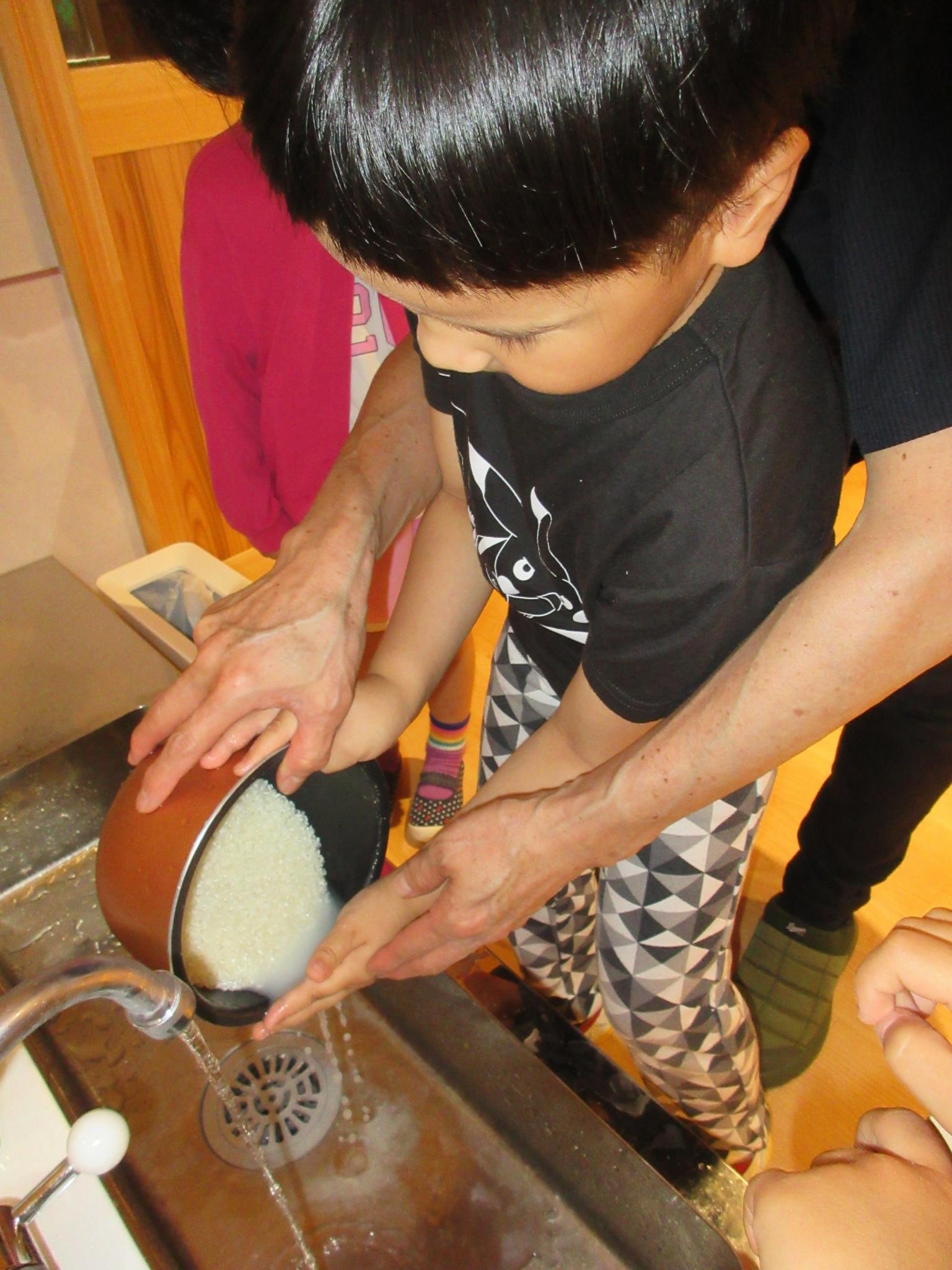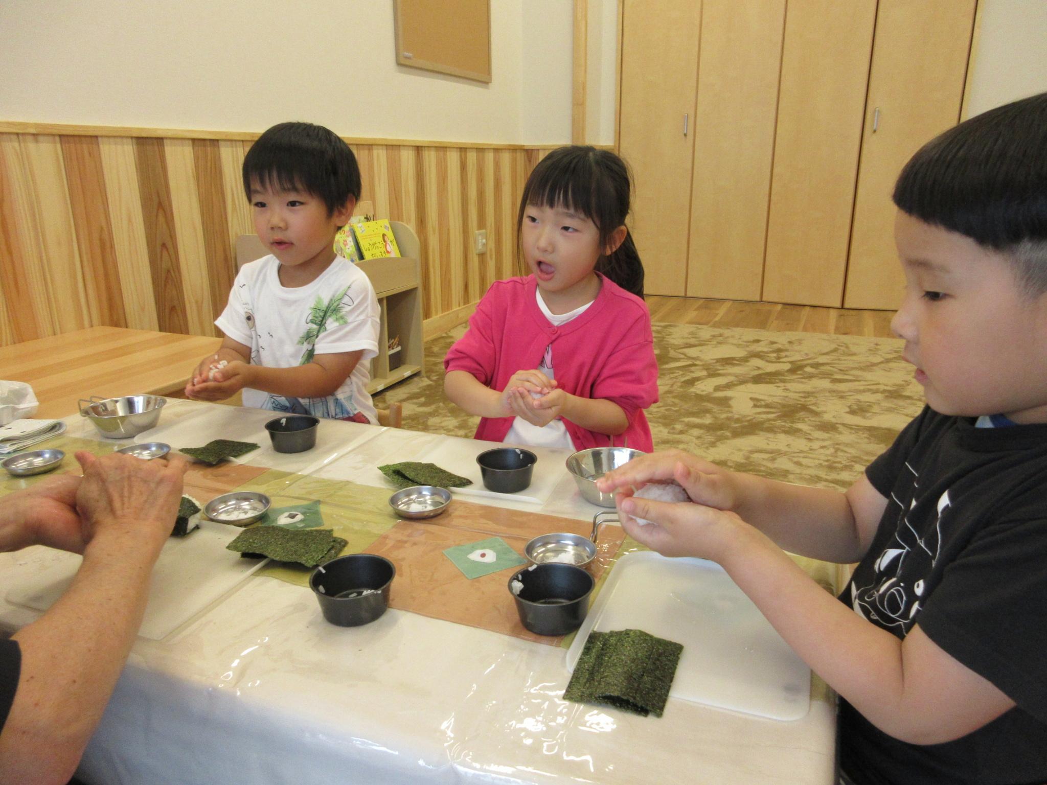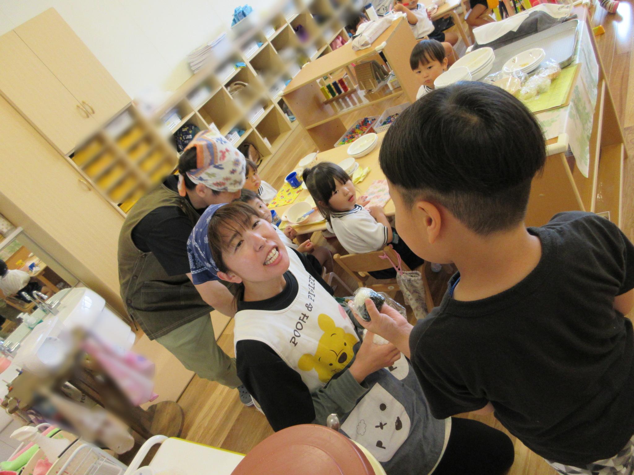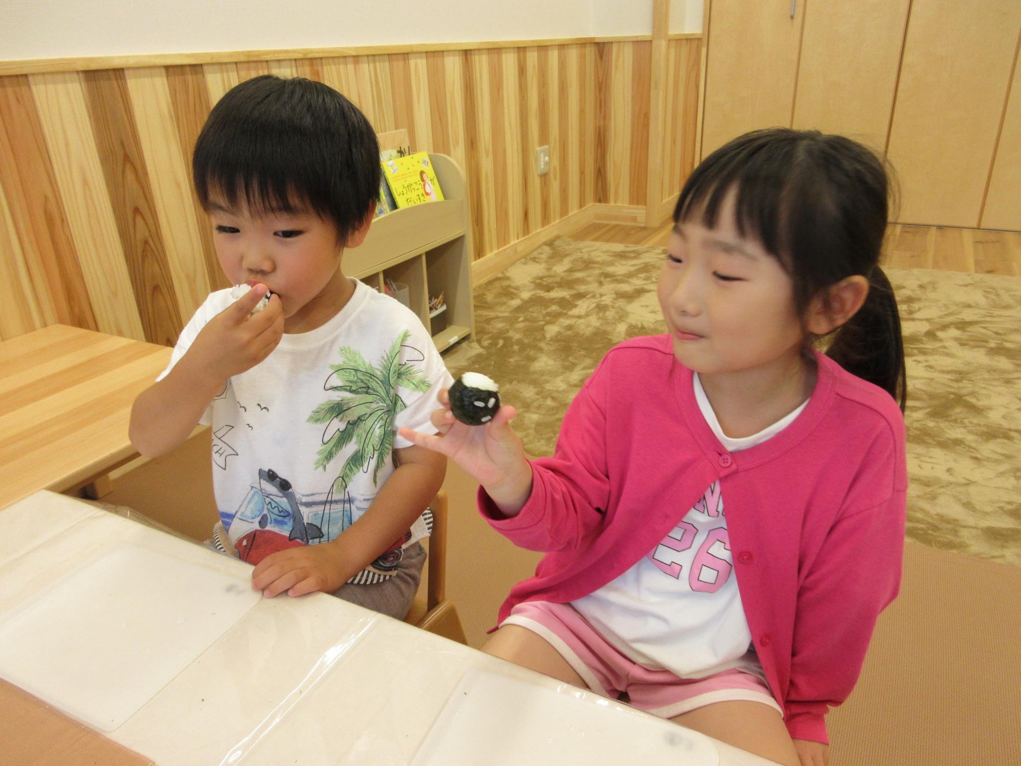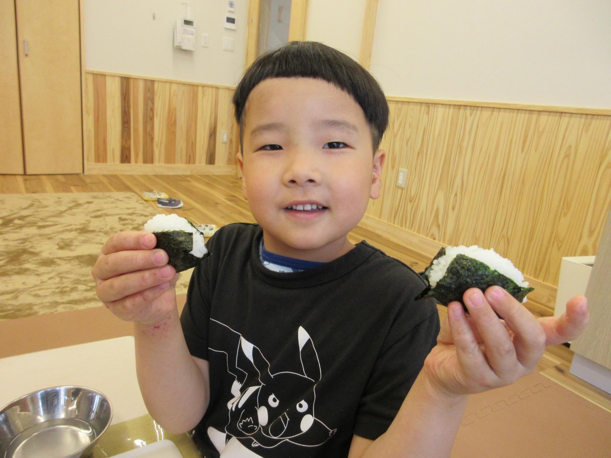 「たのしみだった~」「しょっぱーい、塩の味。」また作りたい食べた~い。1年間楽しみに待っていたおにぎりタイムでした。