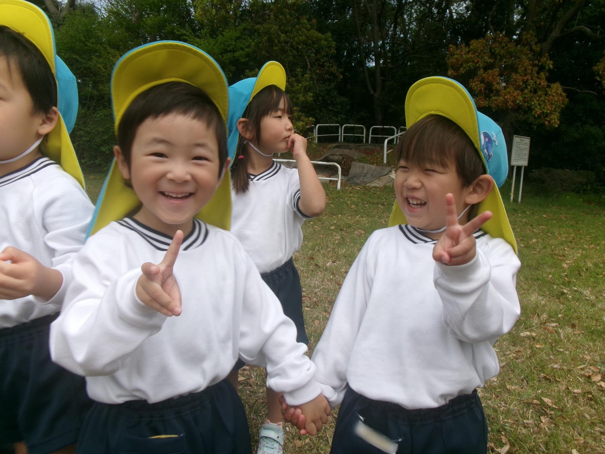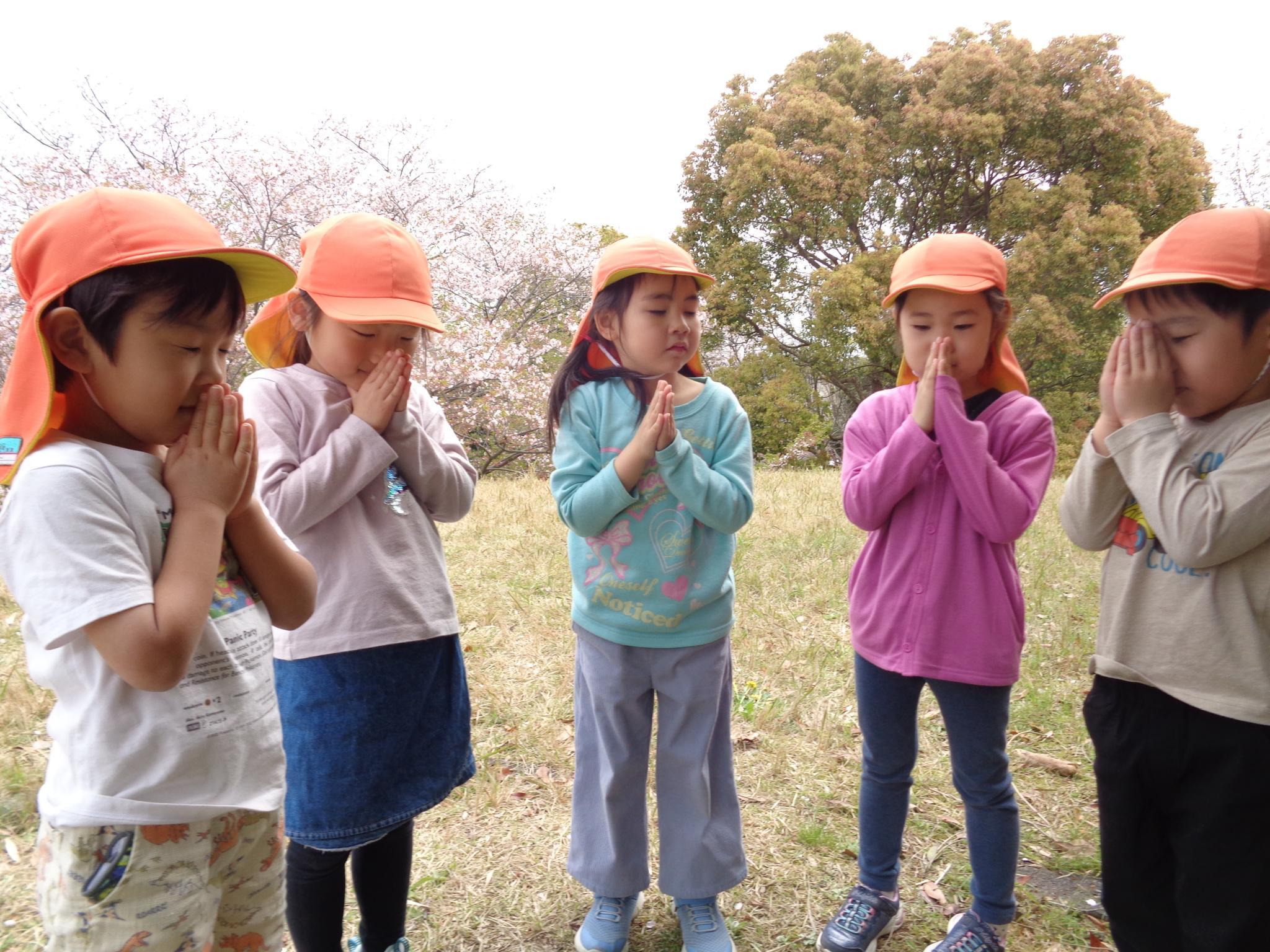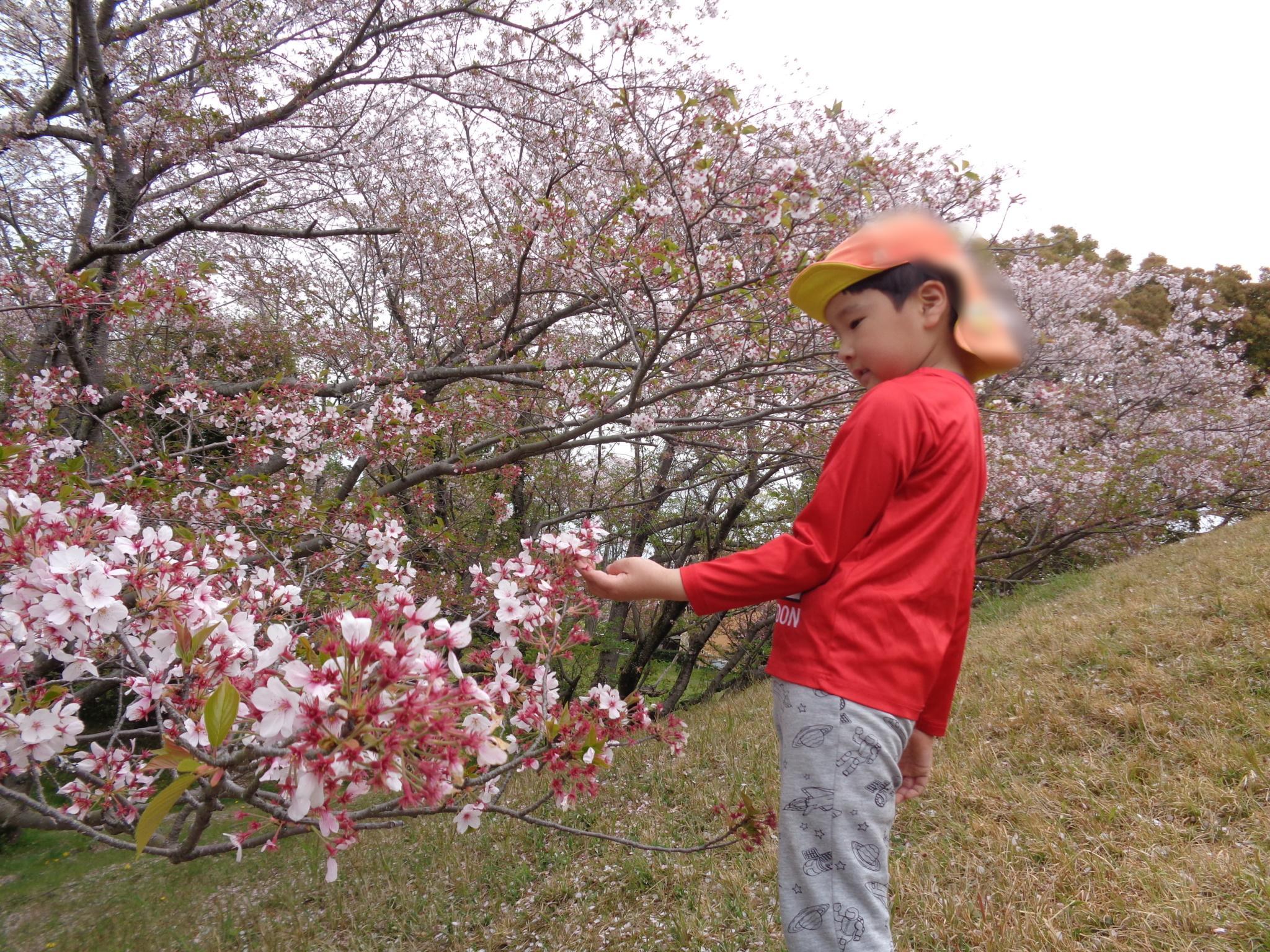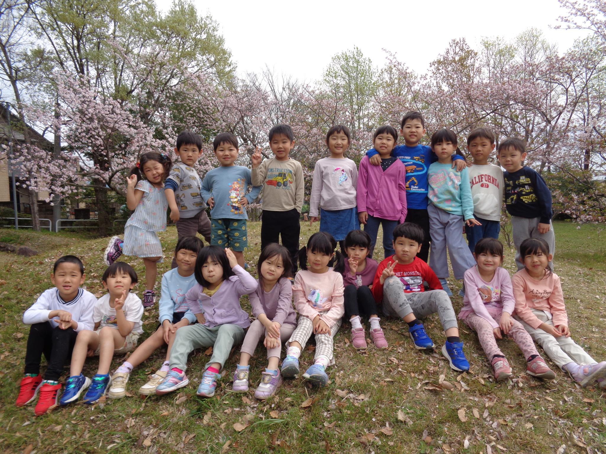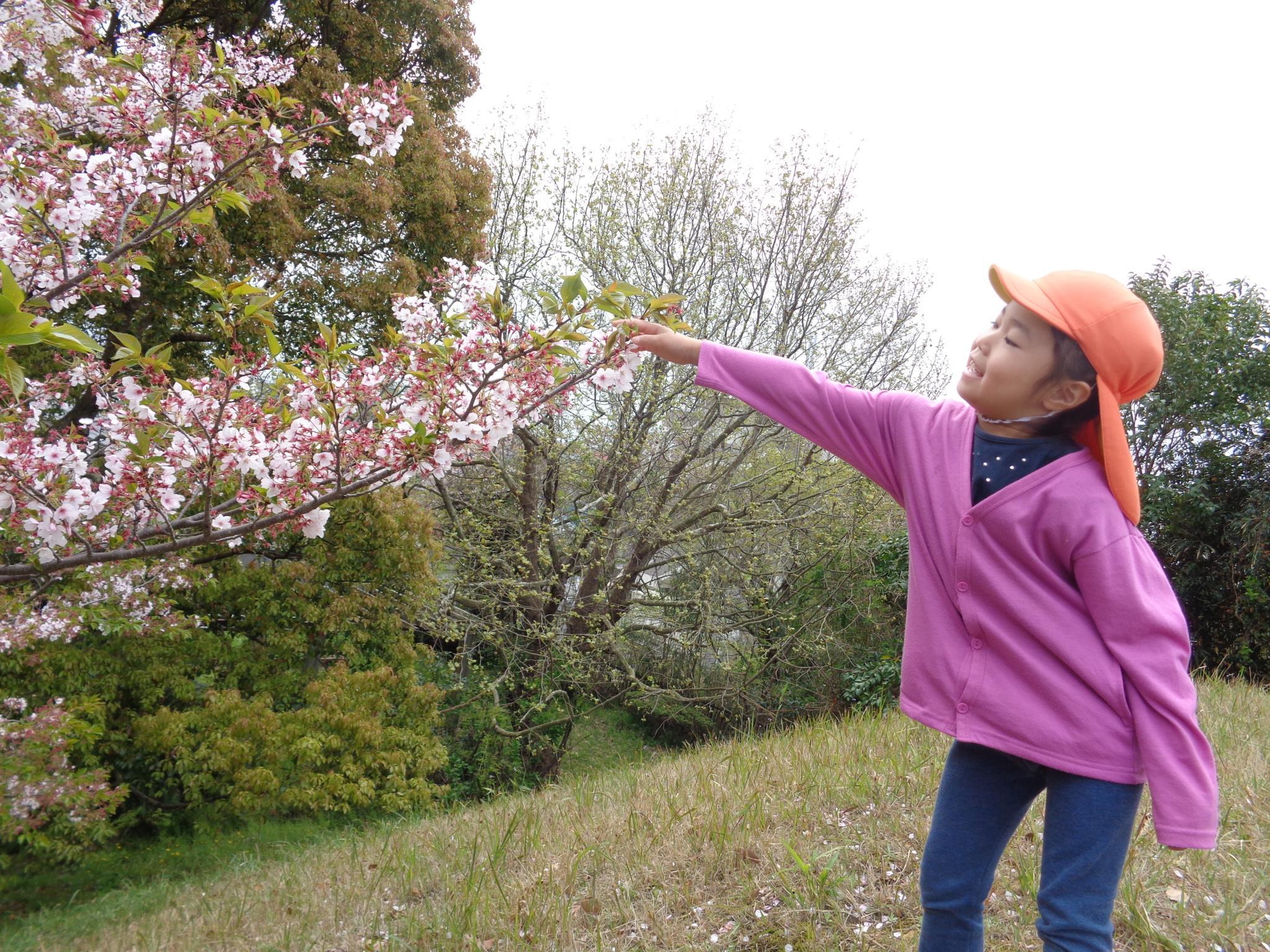 もも組とばら組で京見塚公園へ散歩に行ってきました。まだ、桜が咲いていて、みんな大喜び!!花びらをキャッチしようと頑張ったり山を登って楽しみました。