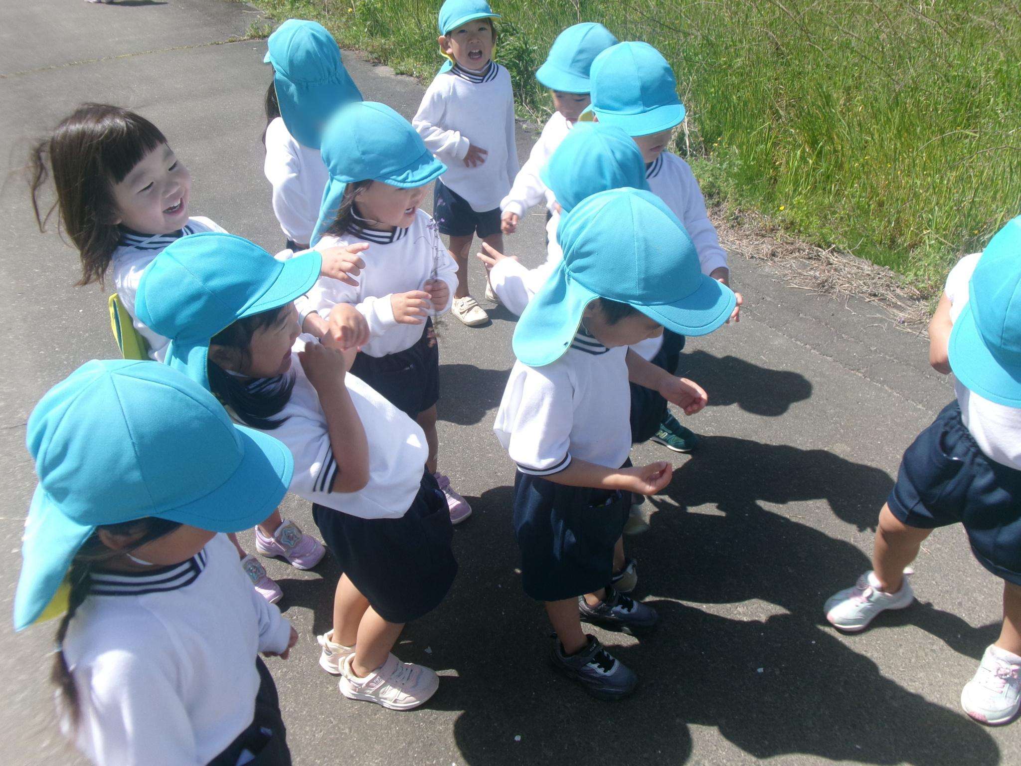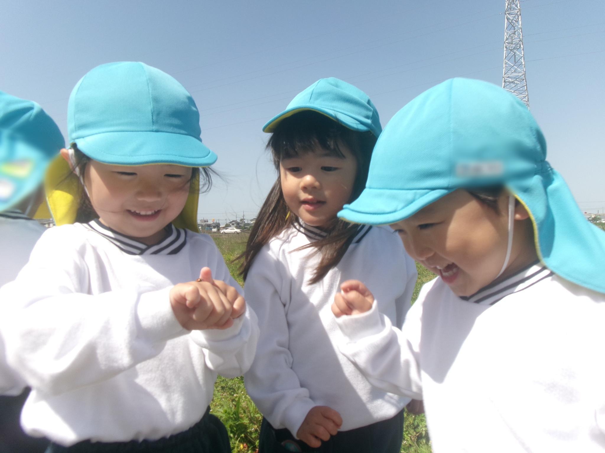 てんとう虫やたんぽぽなど春を沢山見つけて触れ合って遊びました。少しずつ新しいクラスでの生活にも慣れ先生やお友達と笑顔で過ごす時間が増えています♪