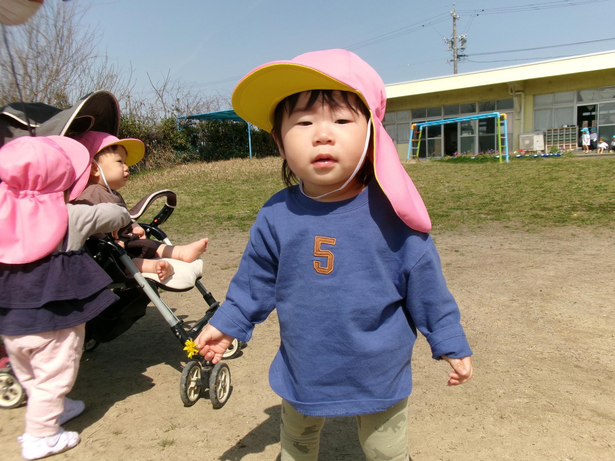 保育園西側の用水路沿いに散歩に行ってきました。たんぽぽを摘んだり、てんとうむしを捕まえたりと春を満喫し、大喜びの子どもたちでした。