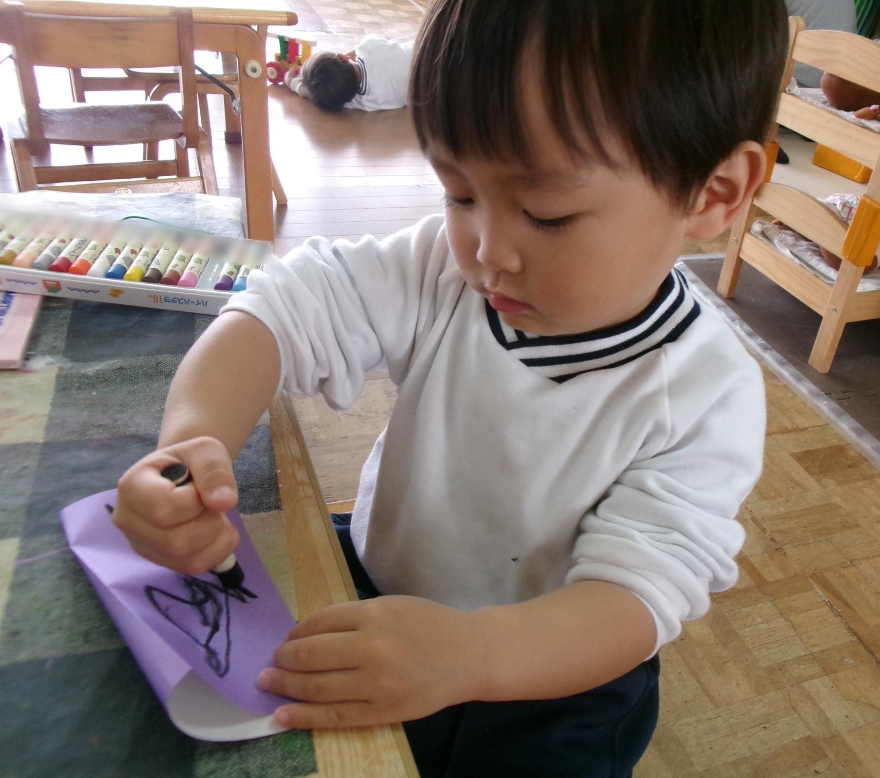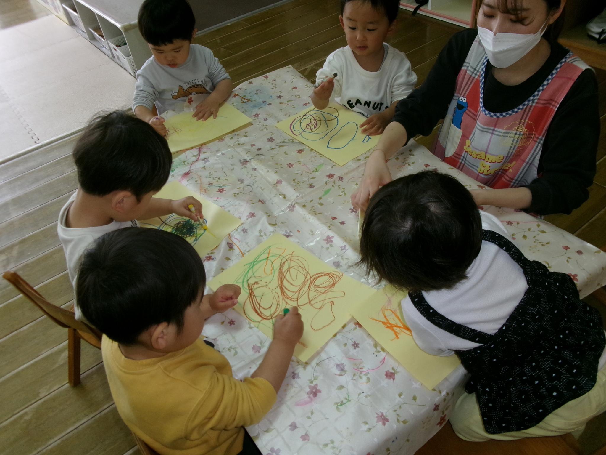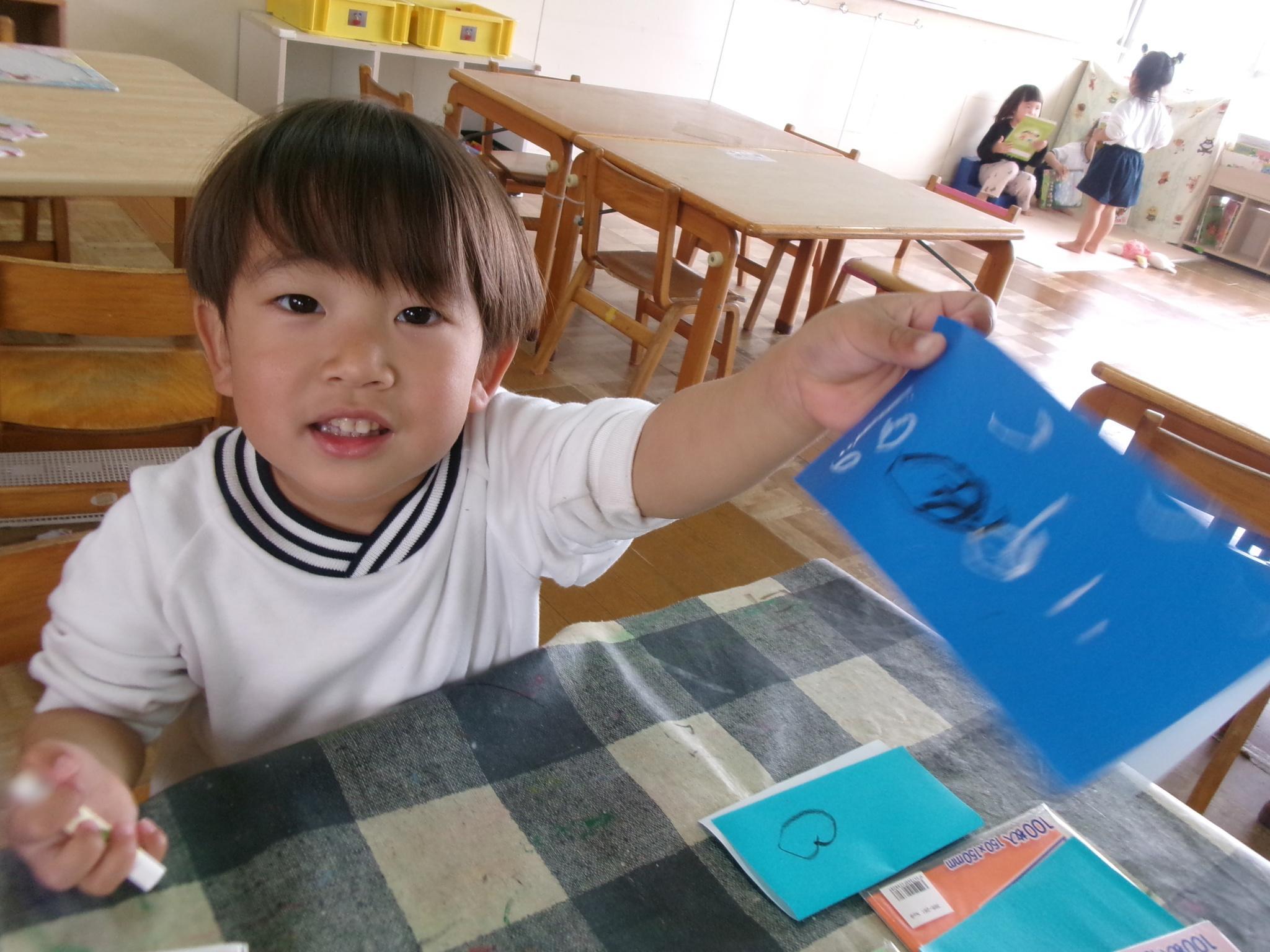 今月から月刊絵本の付録にあるひらがなの練習が始まりました!「とめる」「はねる」「はらう」の三個を意識しながら取り組むことができました。「小学生みたい!!」と緊張感を持ちながらも楽しくできました。