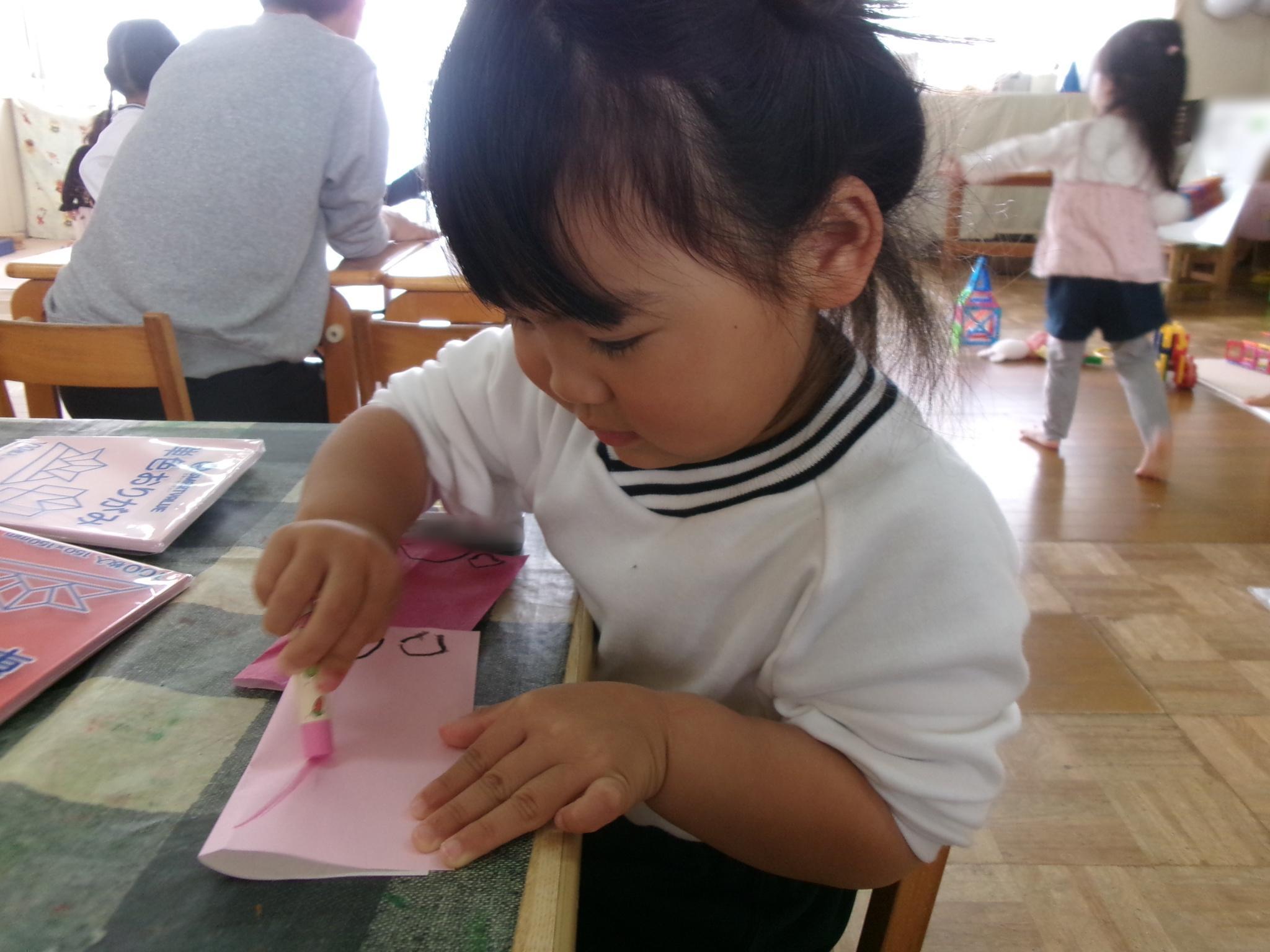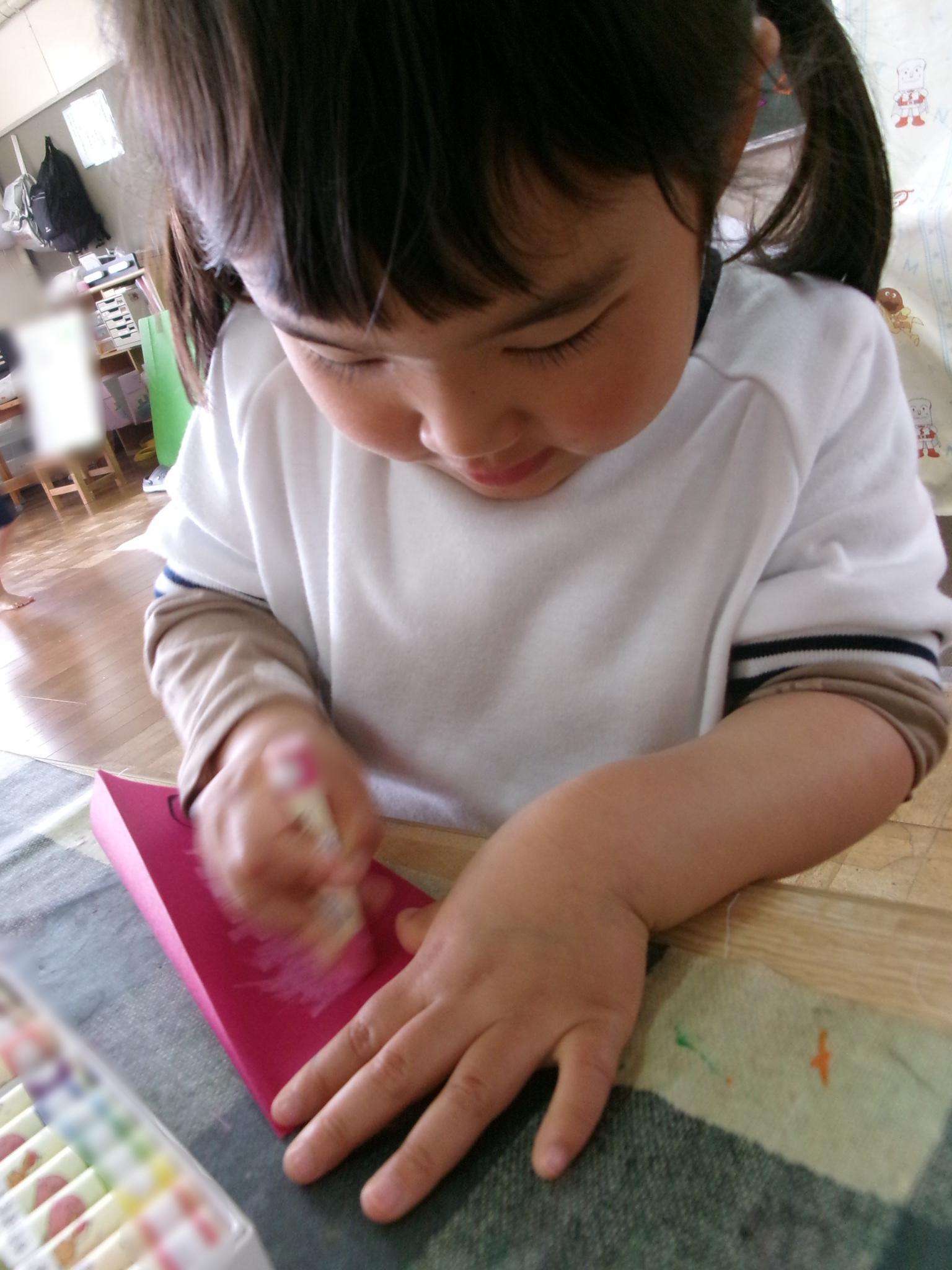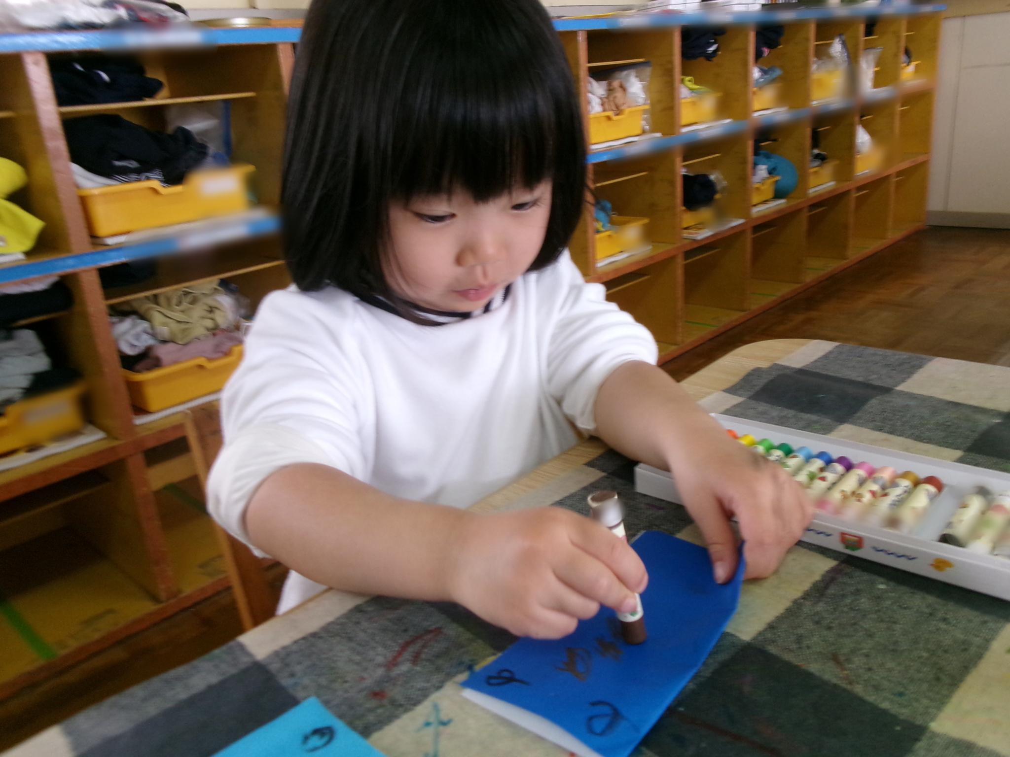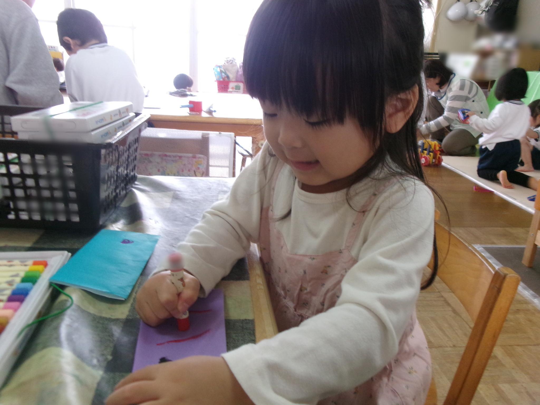 今月から月刊絵本の付録にあるひらがなの練習が始まりました!「とめる」「はねる」「はらう」の三個を意識しながら取り組むことができました。「小学生みたい!!」と緊張感を持ちながらも楽しくできました。