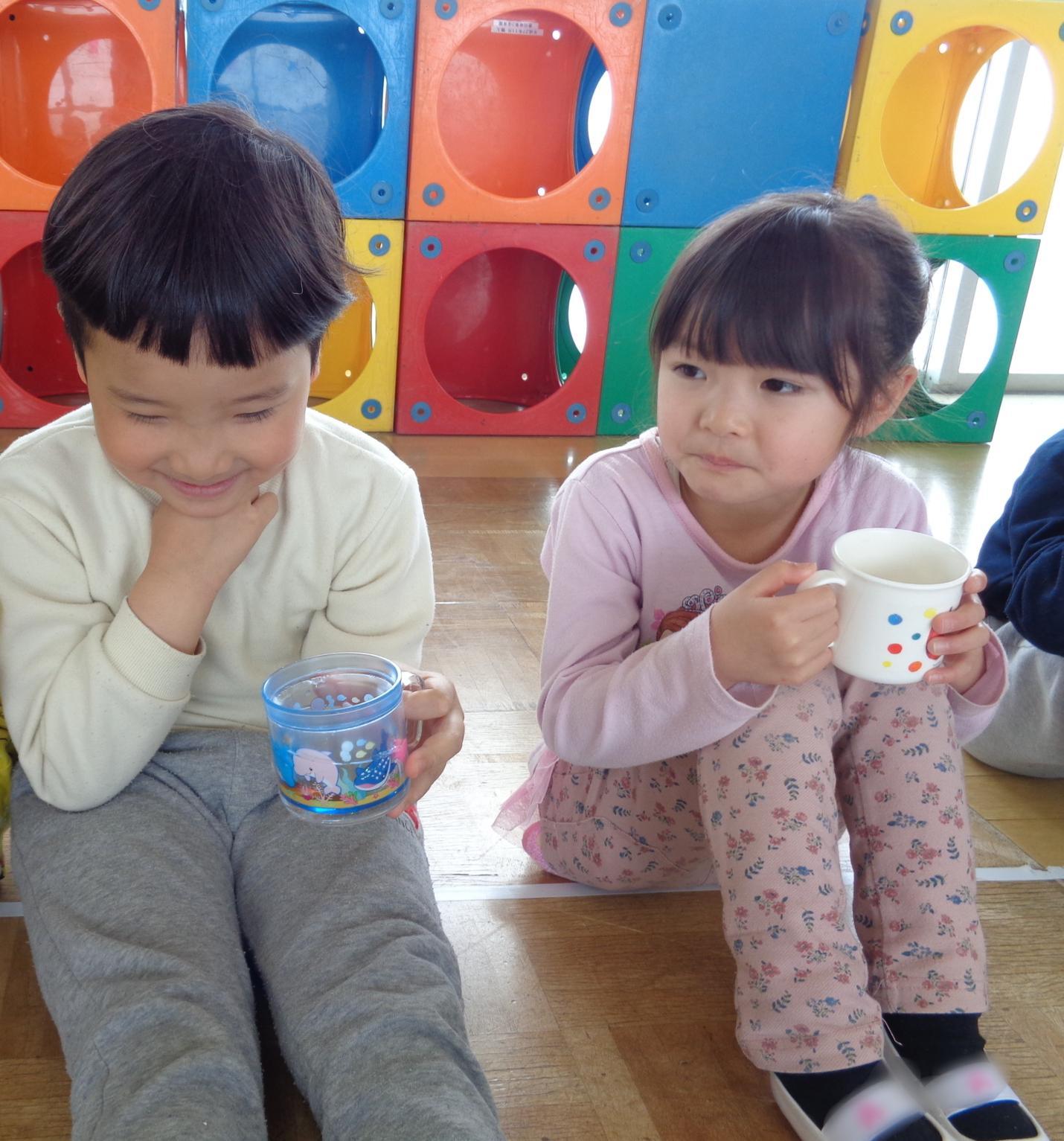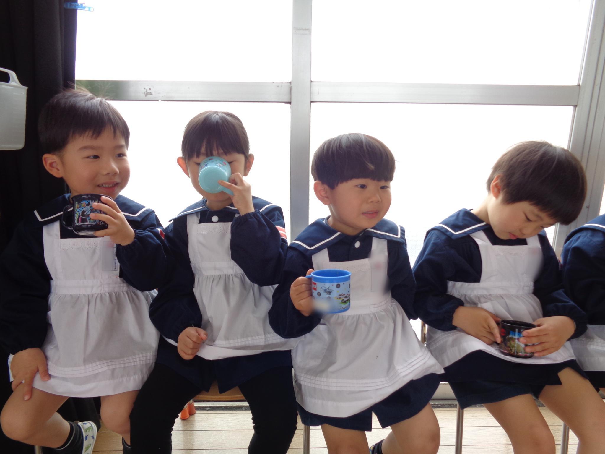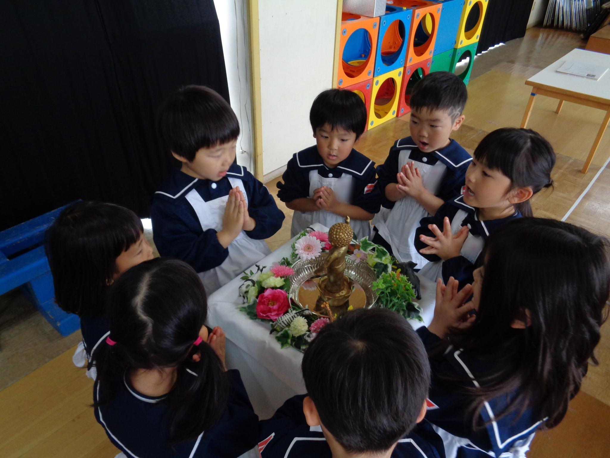 花まつりを行いました。紙芝居を見たり甘茶を飲んでお祝いしました。「元気に過ごせるように」「大きくなれますように」とお祈りしました。