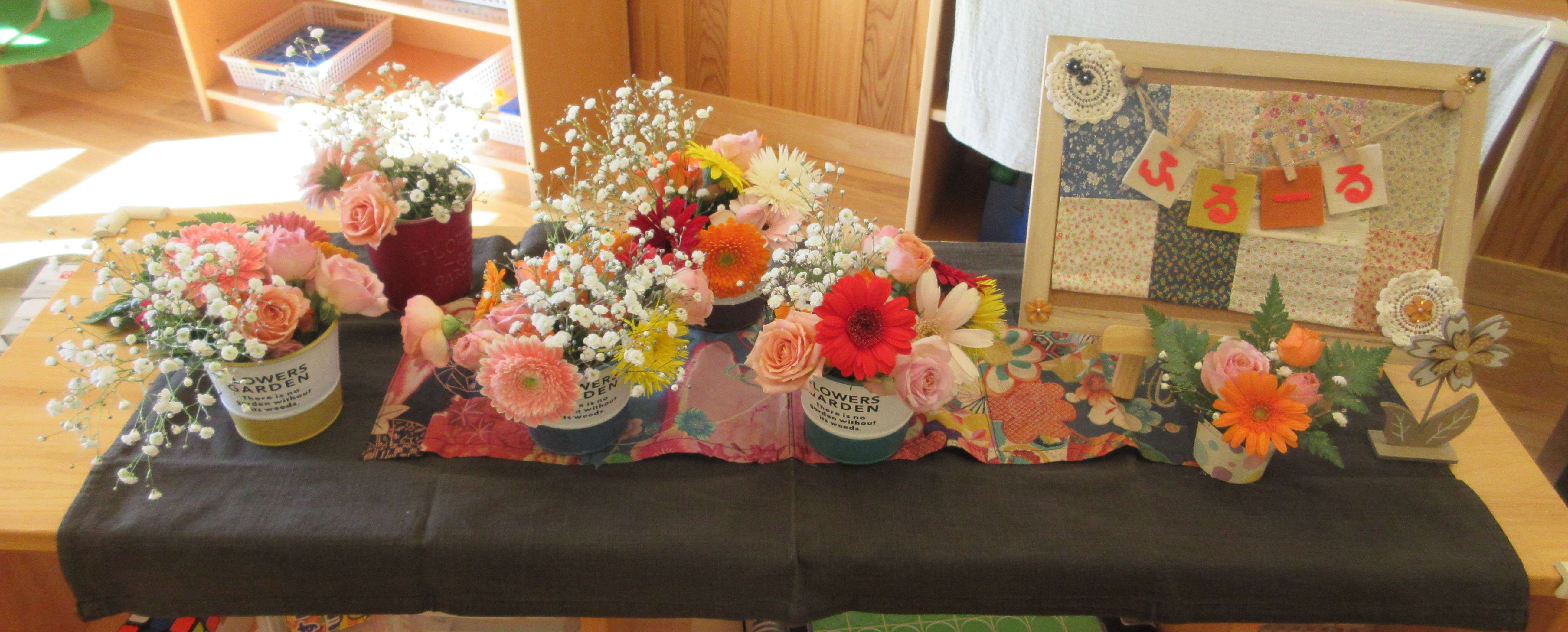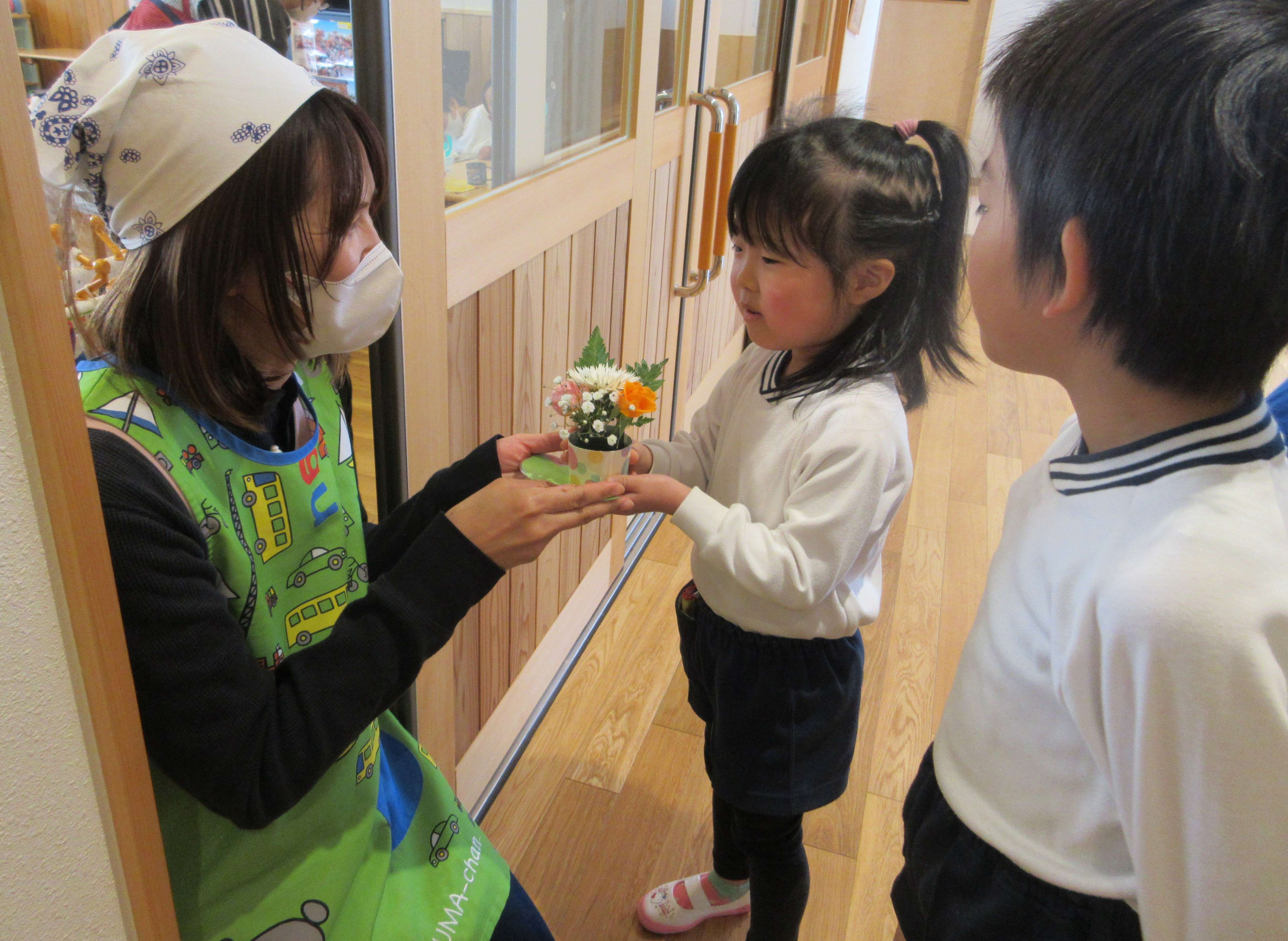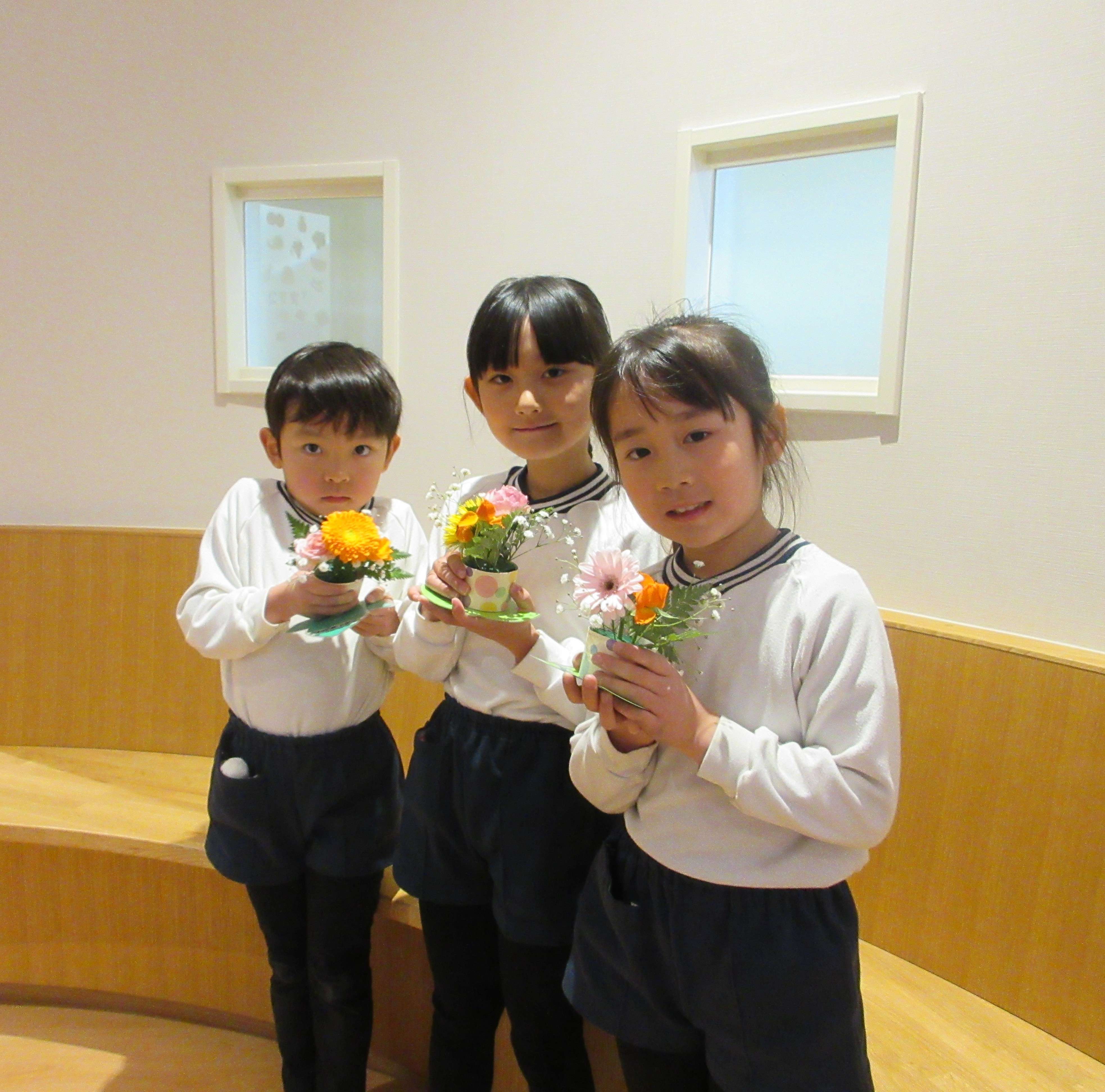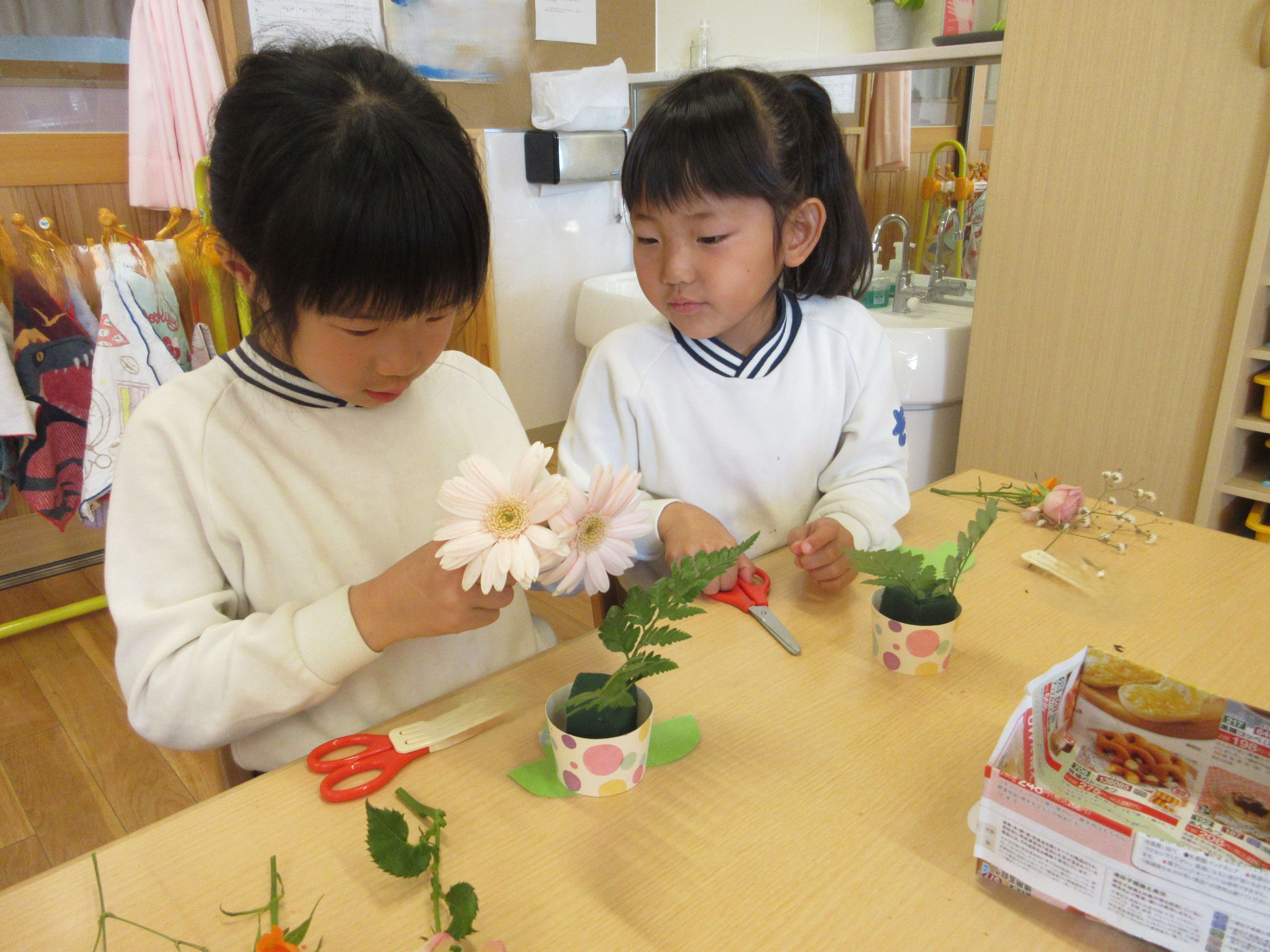 お花と向き合い、子どもたちの笑顔の花が咲き、キュートなフラワーアレンジの完成!