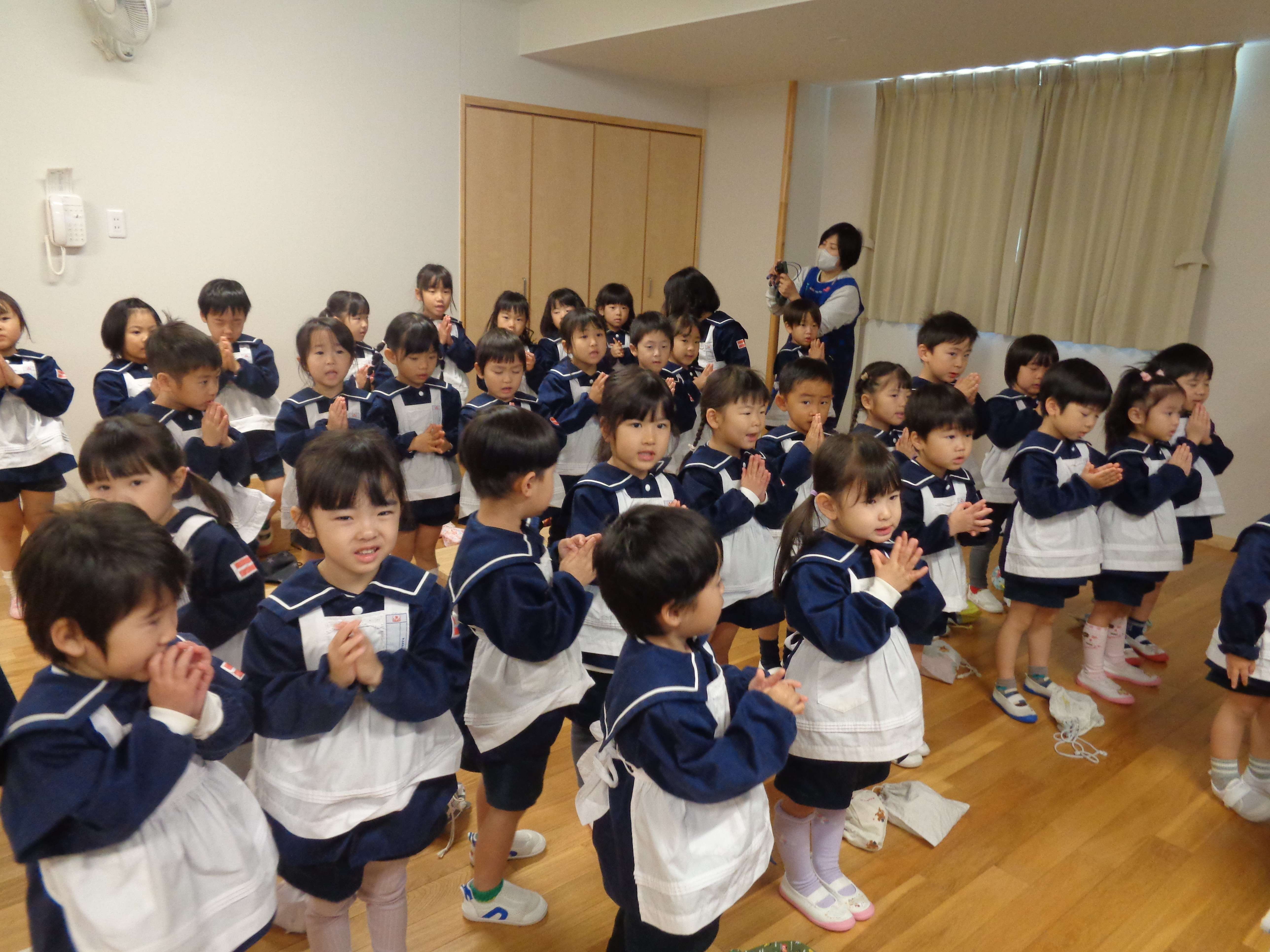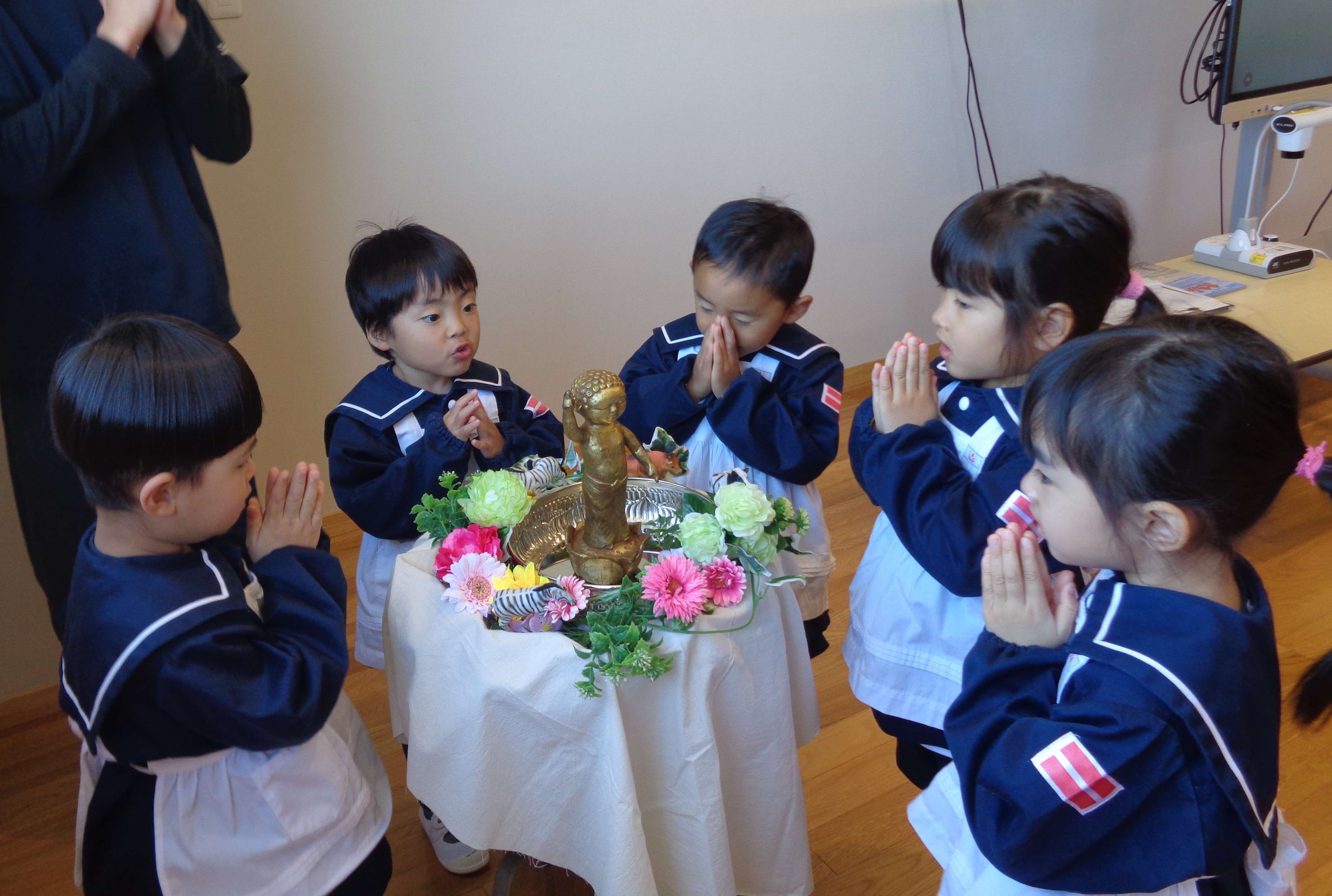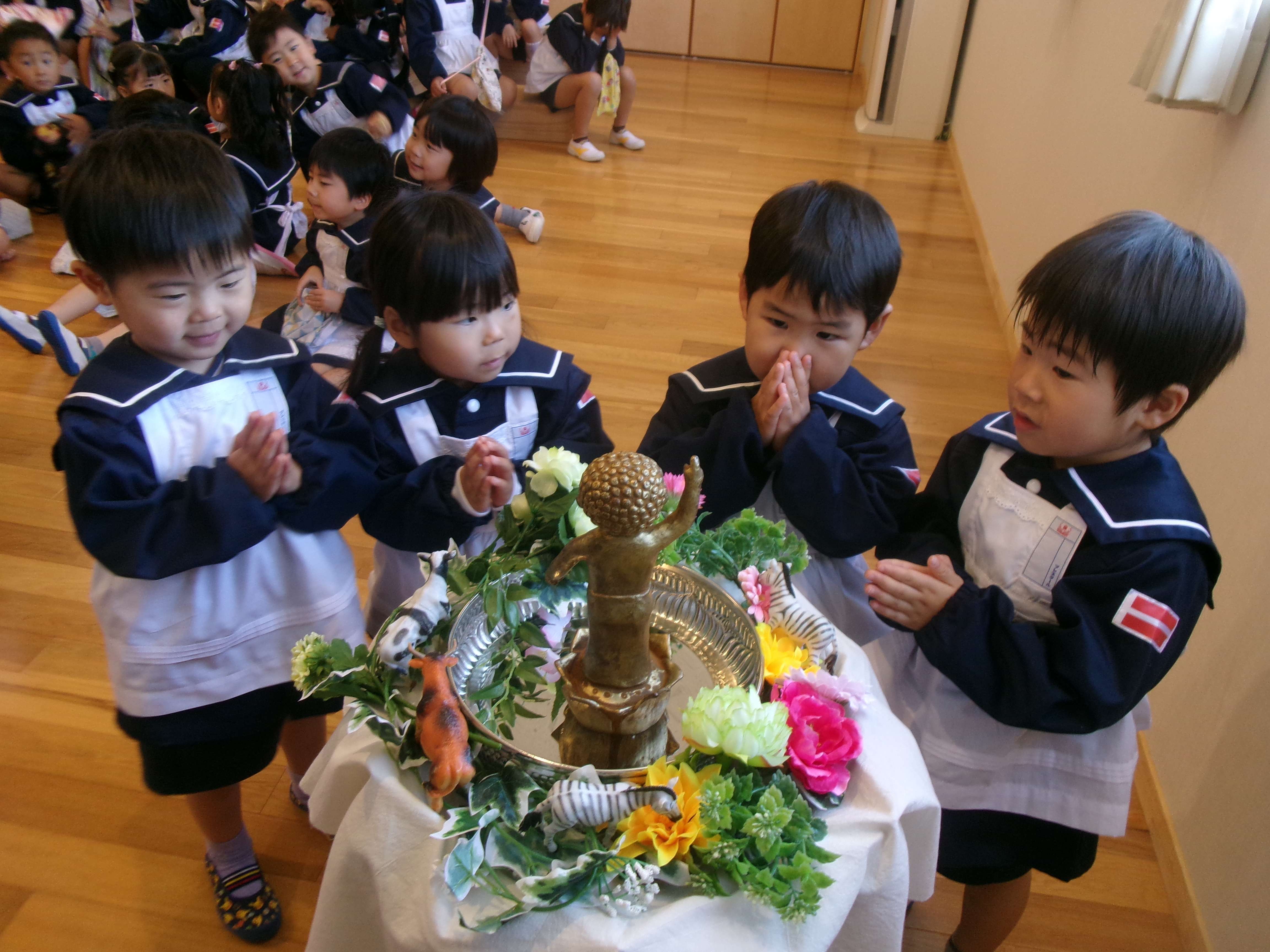 のの様の誕生をみんなでお祝いしました。手を合わせお祈りをし、最後には甘茶を飲み素敵な花まつりを執り行うことができました。
